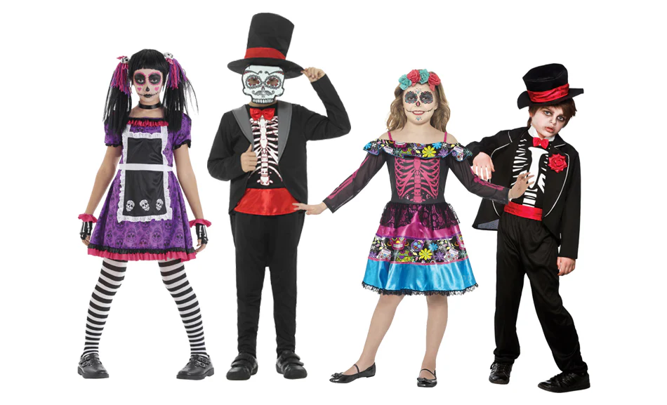 Mexico’s Day of the Dead is an annual festival that takes place in November, celebrating the lives of deceased friends and relatives. It follows a spooky but brilliant fancy dress theme of painted sugar skulls with colourful suits and dresses and has a distinct style that has been captured worldwide. It’s a big dress-up theme with adults and now you can get your kids in involved too with children’s Day of the Dead costumes. They look great and will be different from what the other kids are wearing!