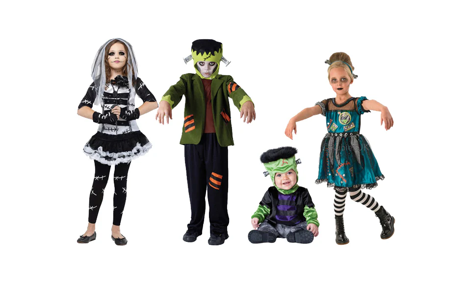 Frankenstein is a genetically modified human that has been transformed into a walking monster as a result of an experiment that went wrong. His fictional story has been told in tales for generations and used to create movies, cartoons, TV series and more! These hand-picked kid’s Frankenstein costumes are some of the coolest Halloween outfits around! Girls will adore the pretty yet gothic style of Frankenstein dresses, including the edgy ‘Bride of Frankenstein’, whilst boys can adopt the classic look of the monster-man.