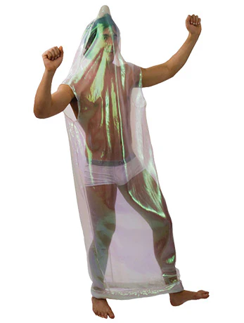 Make sure the groom survives the night without having an ‘accident’ by dressing him in giant rubber contraception, designed to ‘protect’ him from any shenanigans of the evening. He’ll look and feel stupid, but all the more laughs for you guys, right?