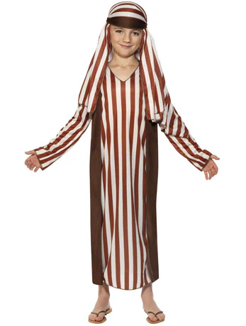Next up in the story, angel Gabriel visits a few shepherds to tell them the news of the arrival of baby Jesus. This Shepherd costume is one of many we sell, it features the classic gown and headpiece, and is at a bargain price too!