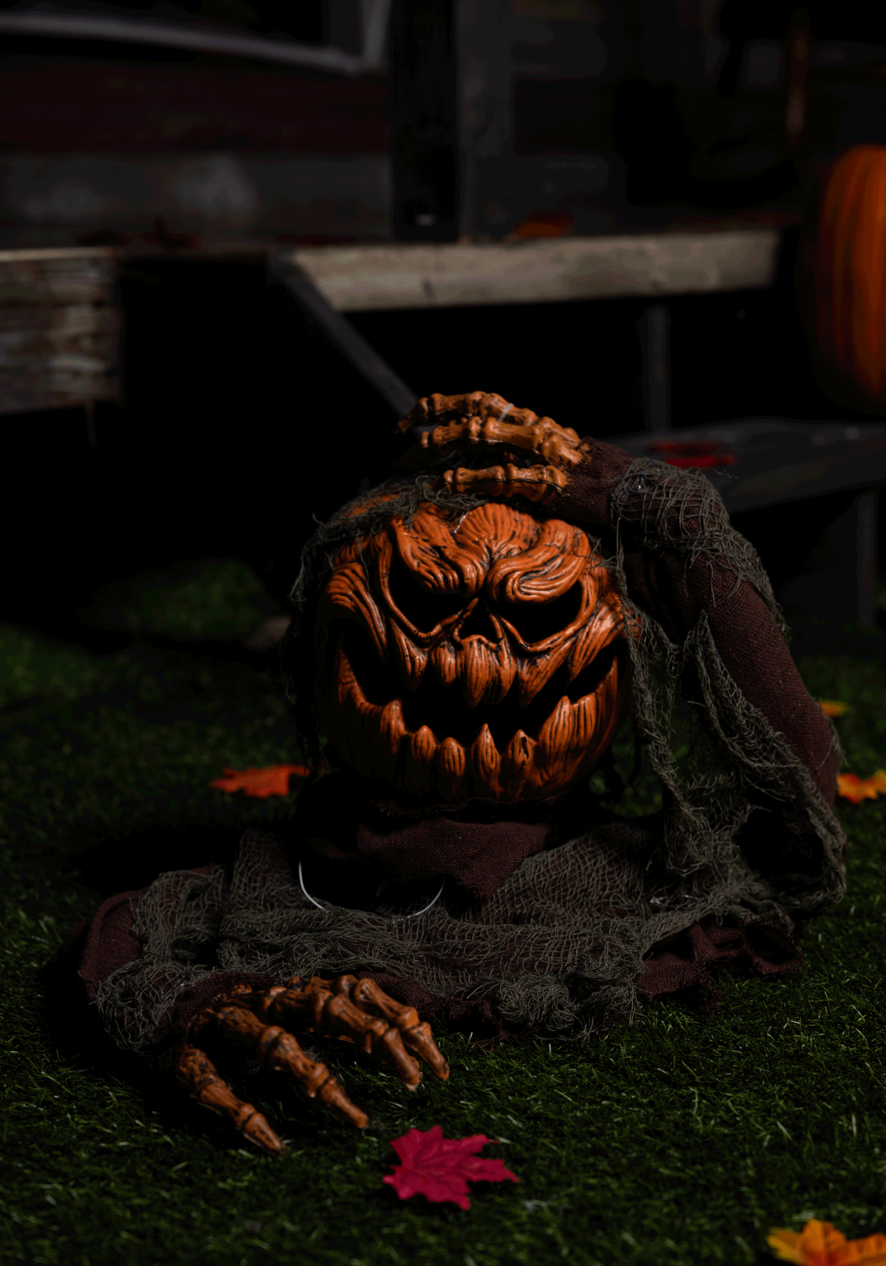 This is an exclusive 14" Animated Head Popping Pumpkin Ground Breaker Decoration.