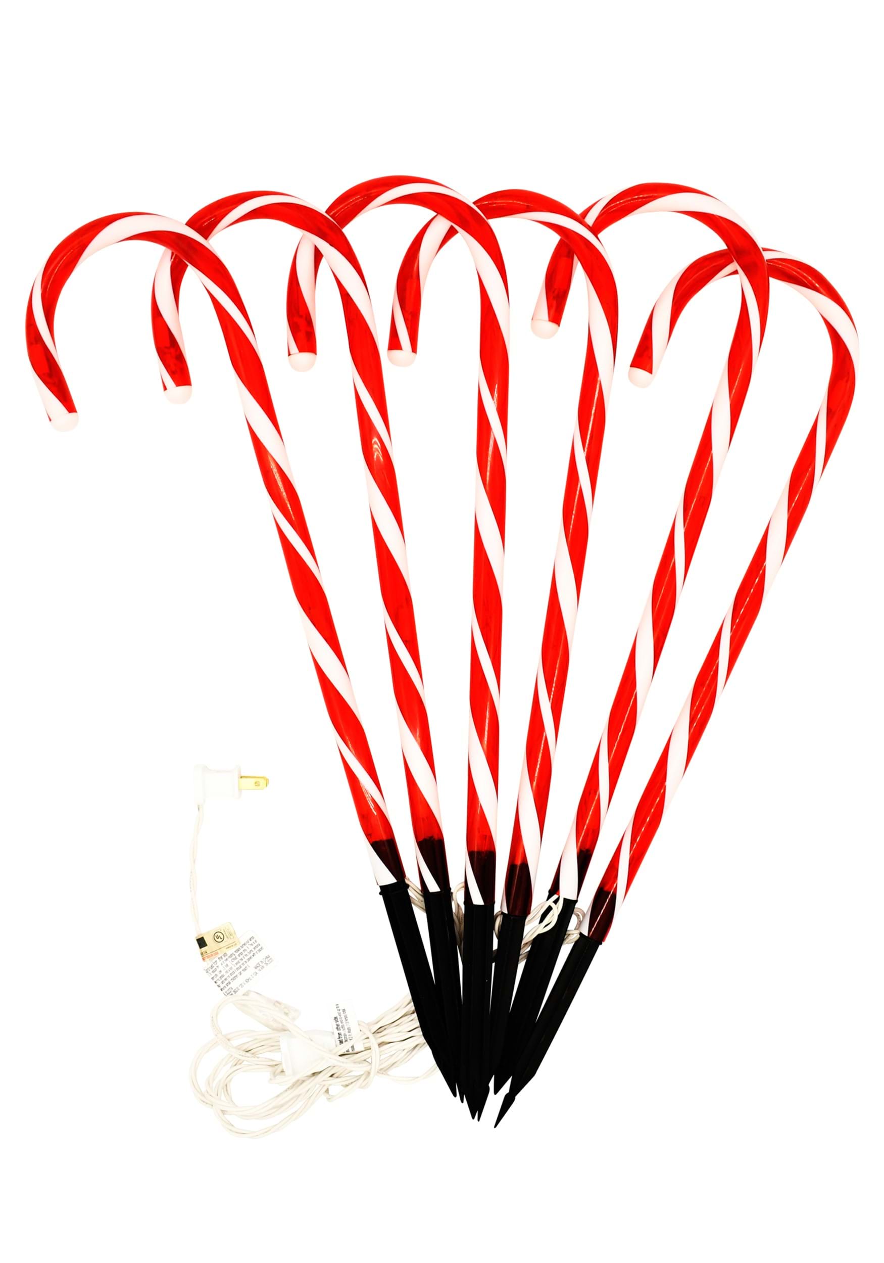 - Candy canes are connected by an electric cord at 22" intervals with a lead cord of 30"; total length approx. 8.5 feet