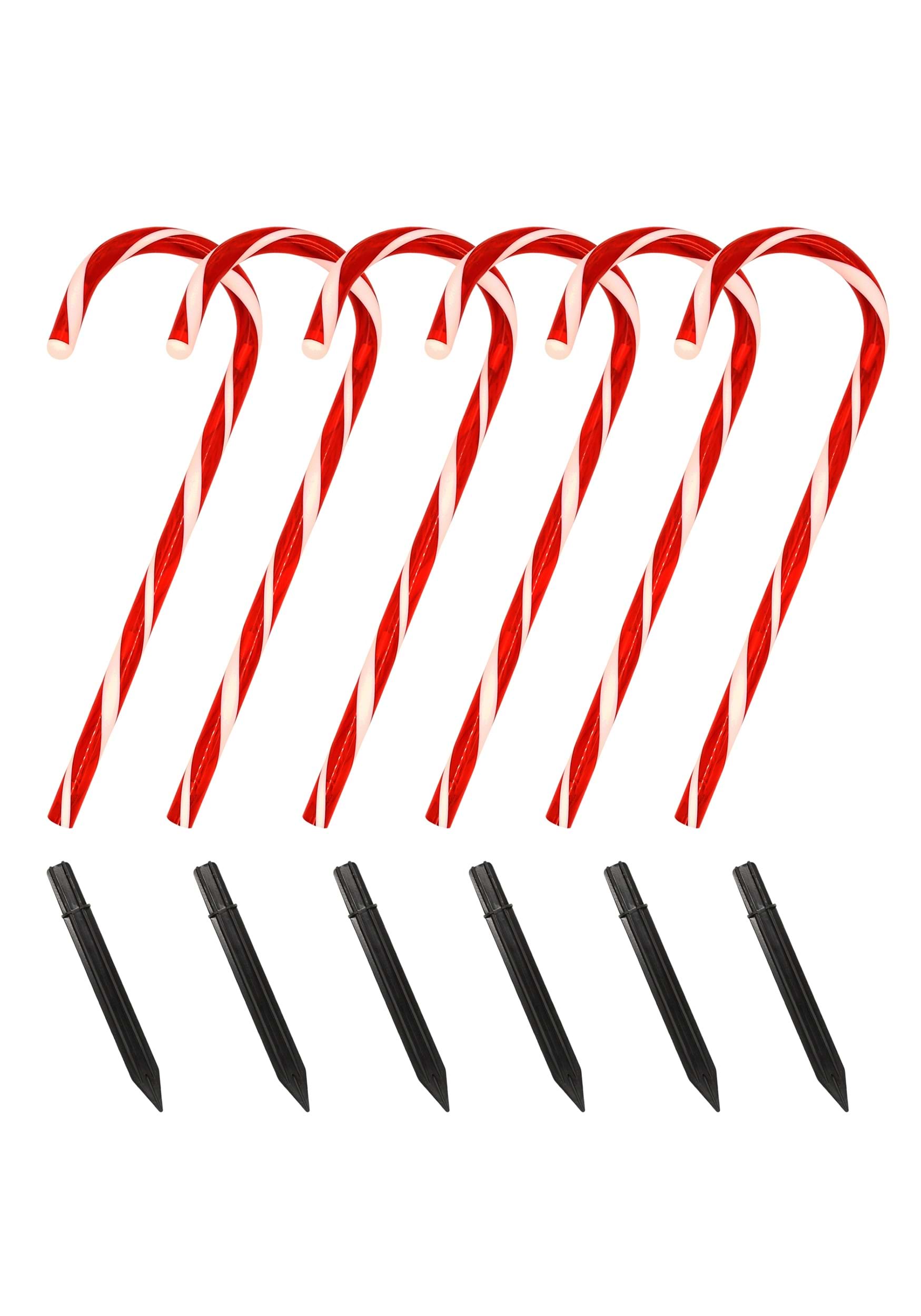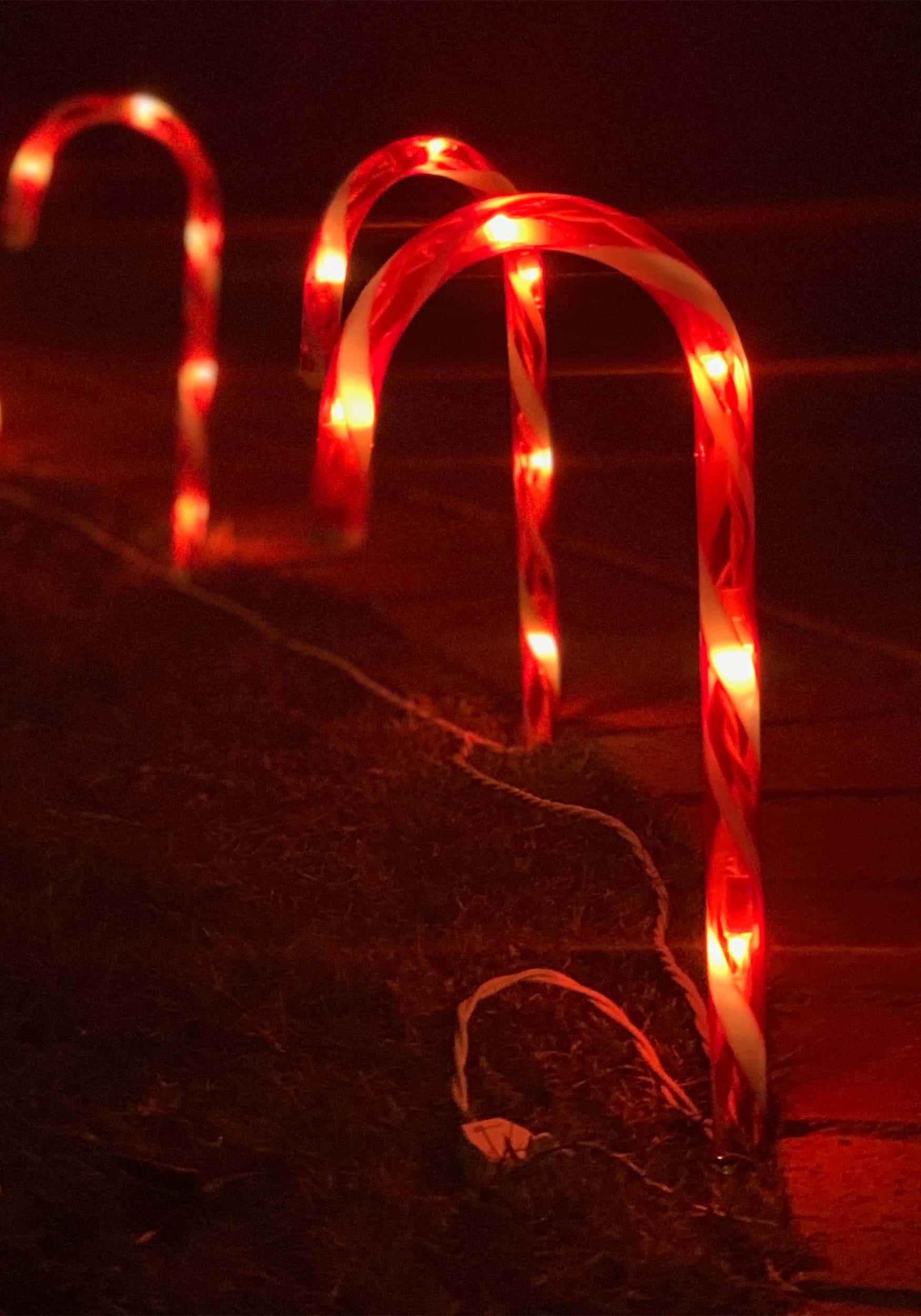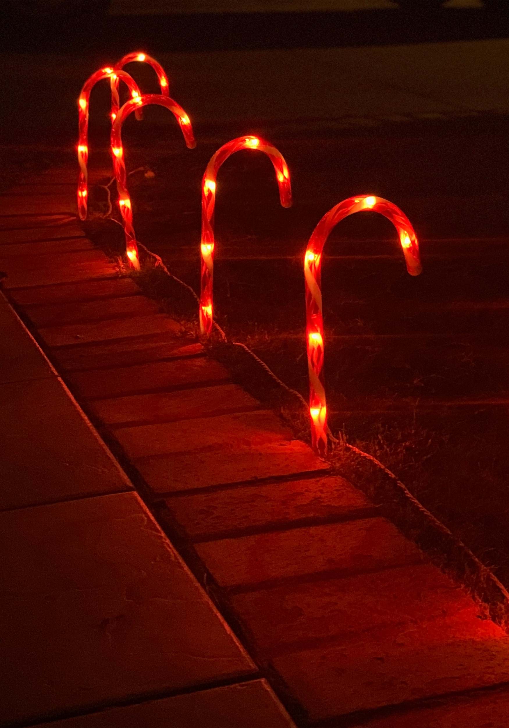 Santa's home base must be a magical place! We imagine rows and rows of beautifully decorated toy factories, toboggan-shaped street cars, shimmering skating rinks, and Christmas trees galore. Since it's an enchanted spot, some of the street markers must be edible, right? Make your home look like St. Nicholas's with this adorable 17" Candy Cane Pathway Marker Light String! The six red-and-white-striped lights are shaped like candy canes and can be staked into the ground thanks to the stakes that come with them. When you plug them in via the attached cord, they look good enough to eat!