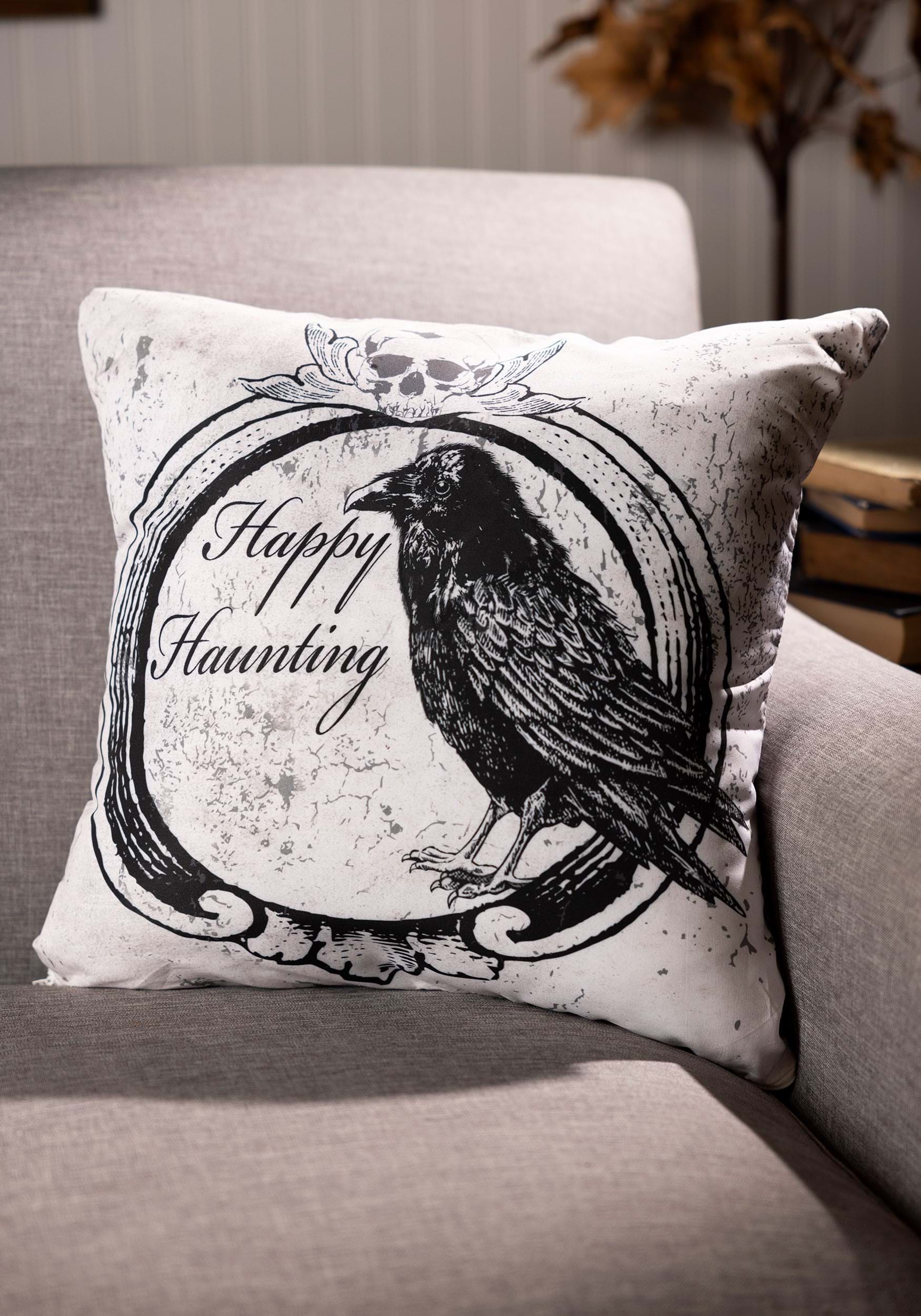 Happy Haunting Raven 18-Inch Pillow Cover