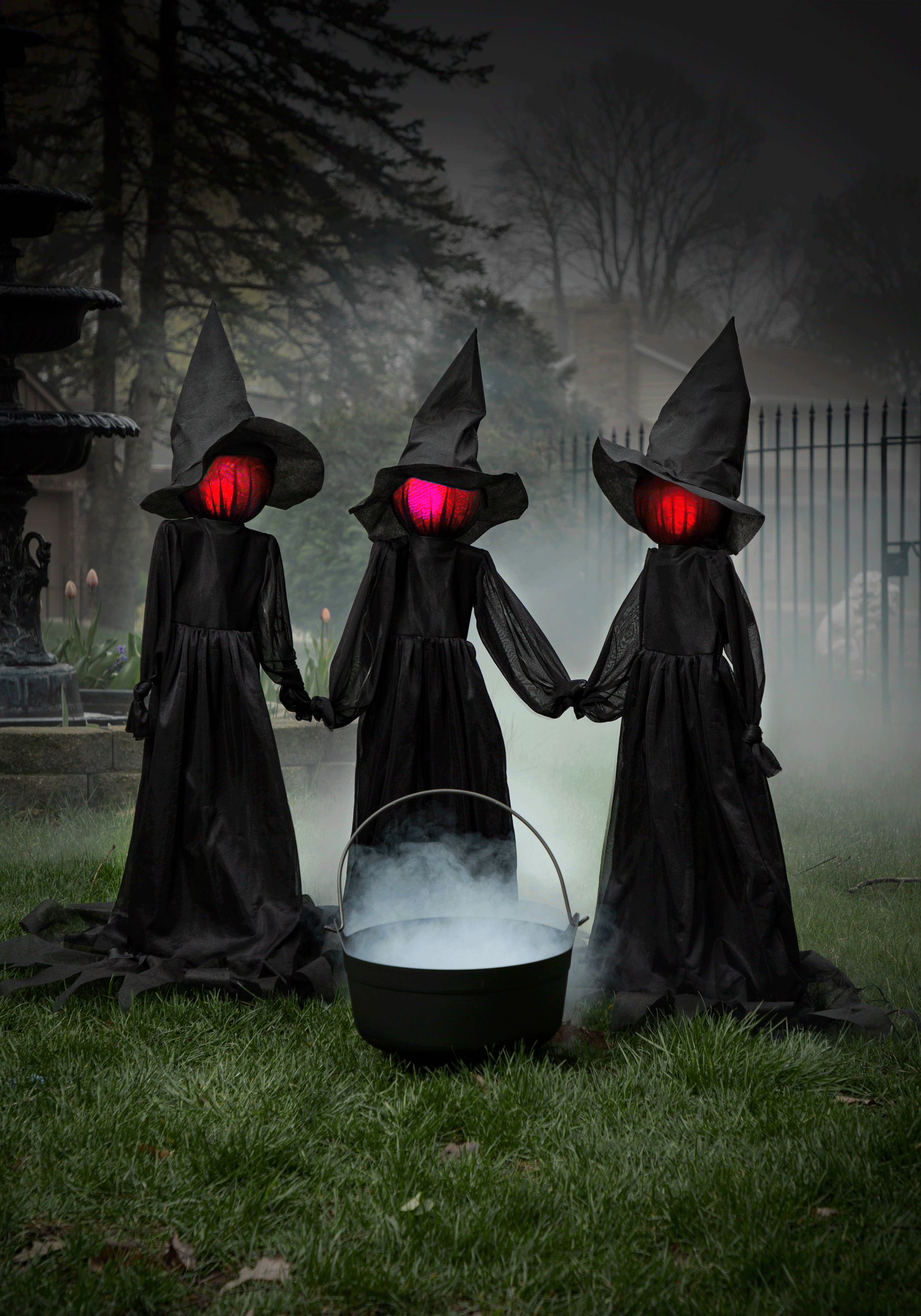 The cauldron in the picture does not come with the 4FT Holding Hands Witches Decoration set.