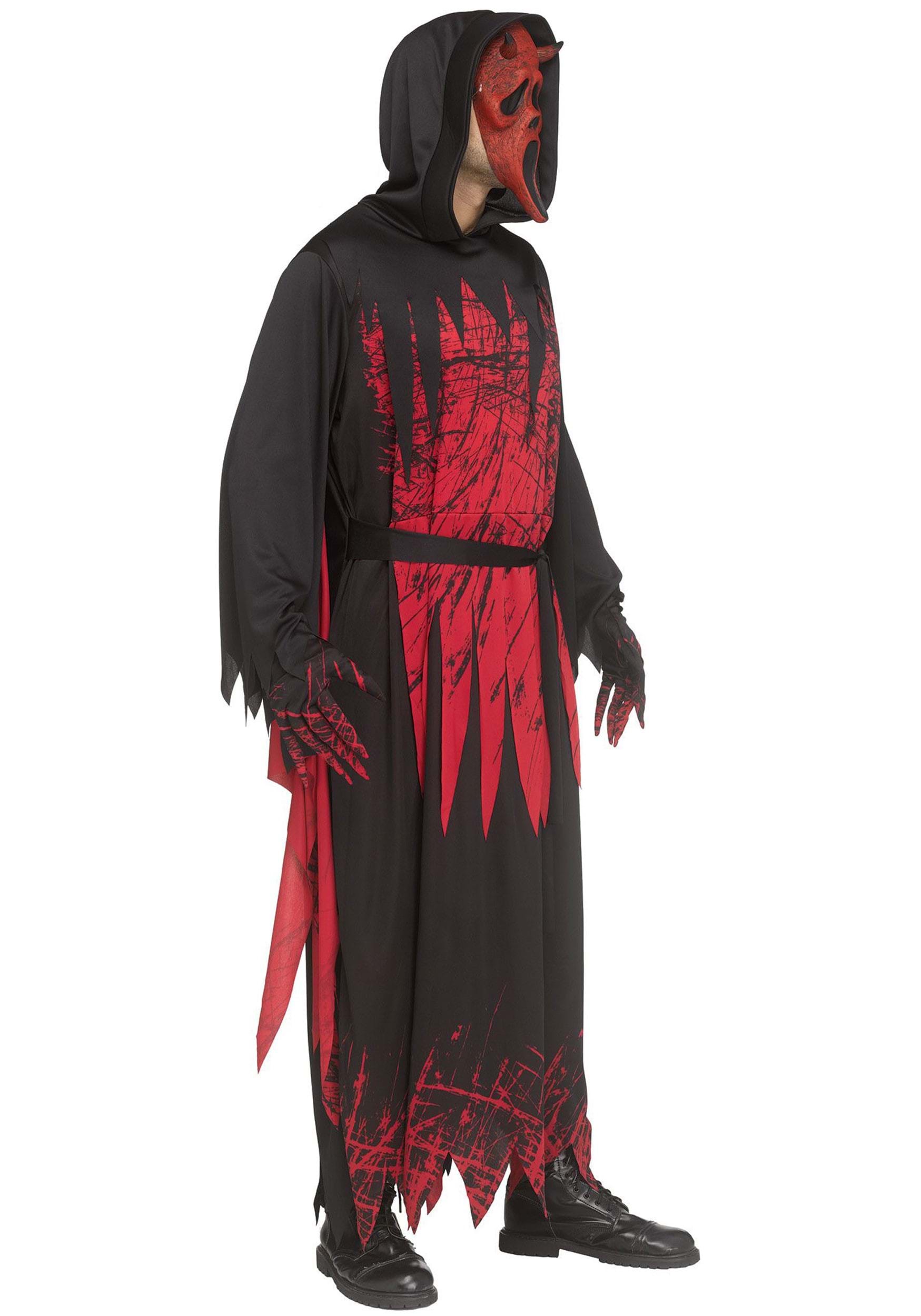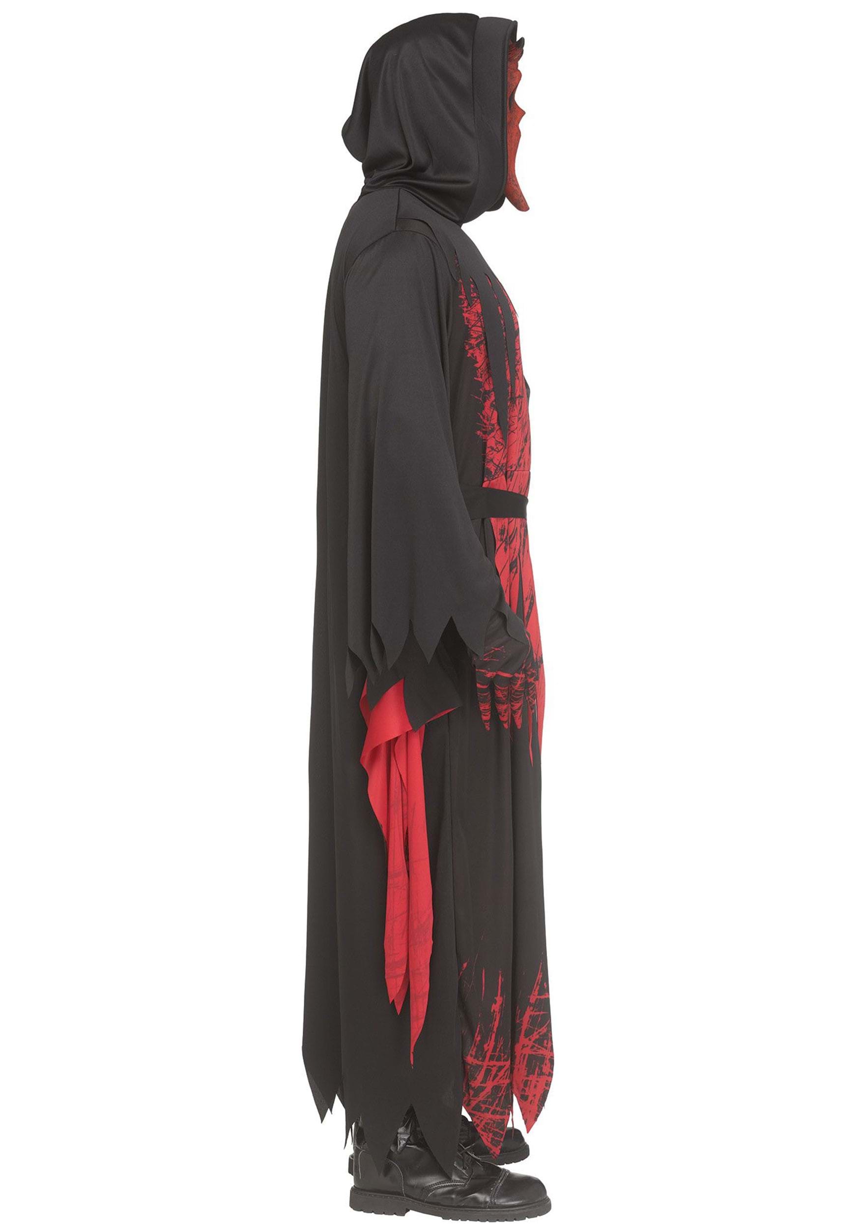 - Pullover robe has all over blood graphics, uneven hemline and sleeves, long tattered draping on the sleeves