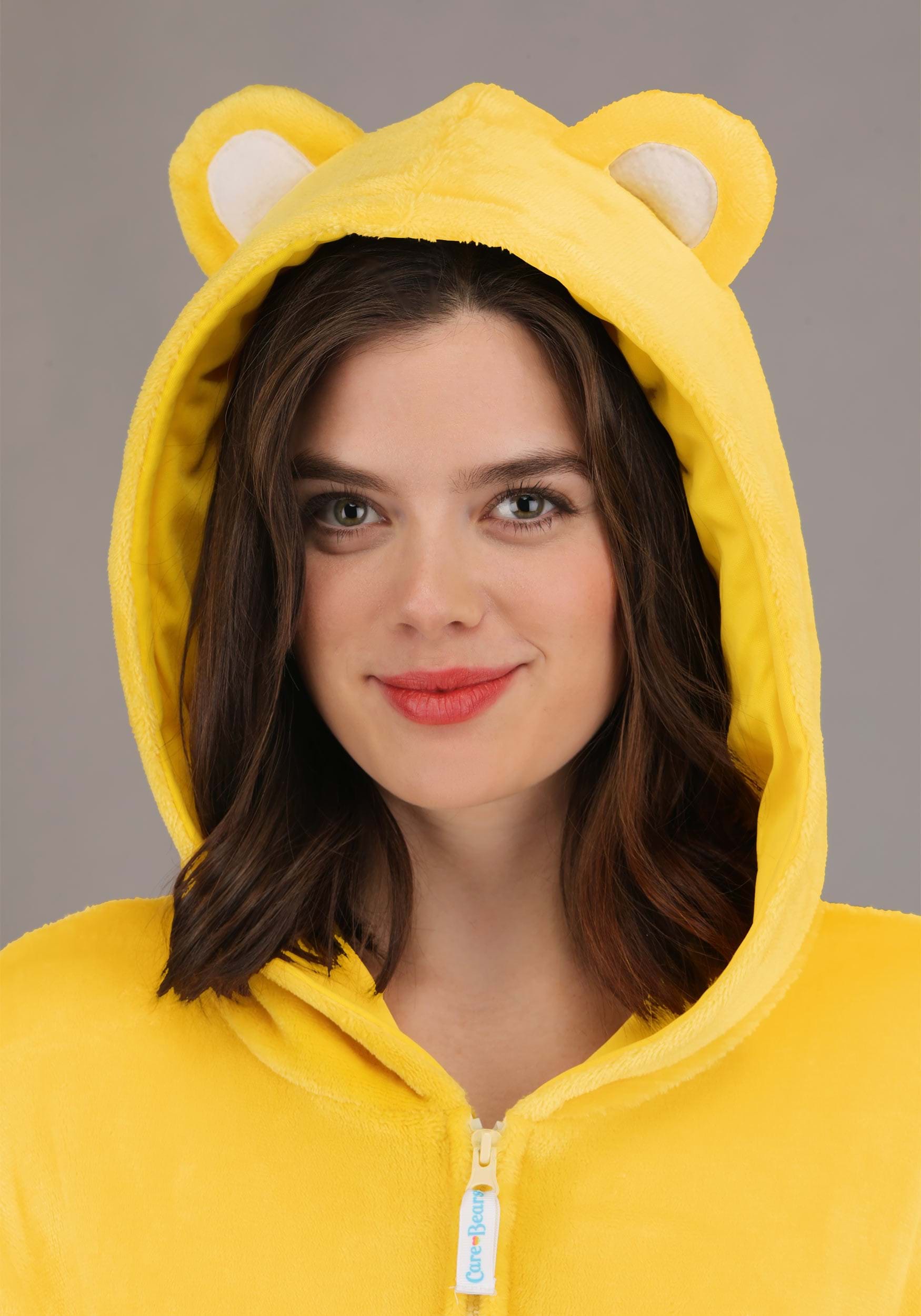 This is an exclusive Adult Care Bears Funshine Bear Costume Onesie.