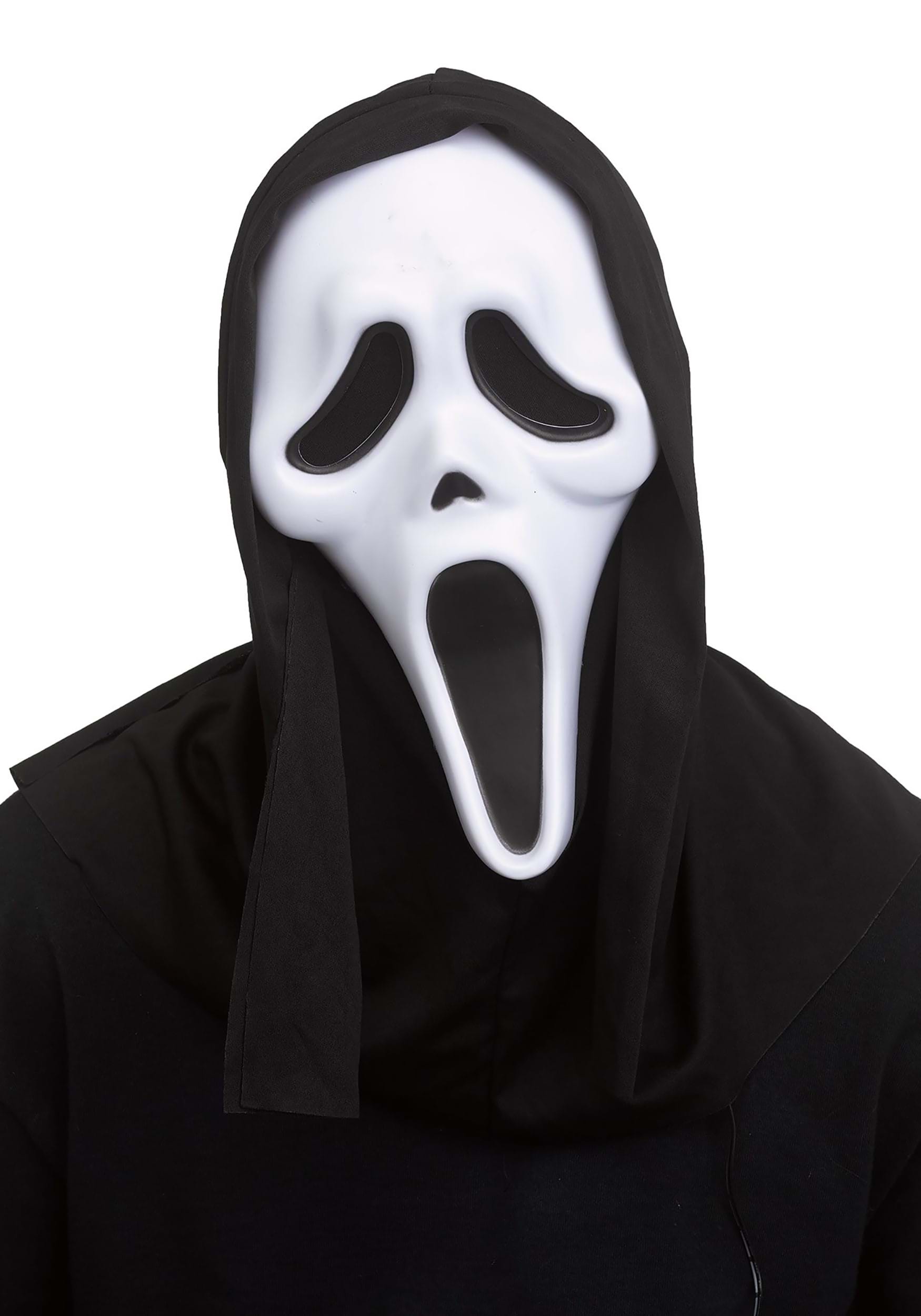 This licensed mask starts simply with a classically shaped white plastic Ghost Face mask. The black-painted mouth has a vent for easy breathing, and the eye openings feature mesh linings that allow a limited but safe amount of vision. Completing the classic base is a black stretch knit head covering that helps hold the mask secure while providing a spooky veil for your Ghostface portrayal.