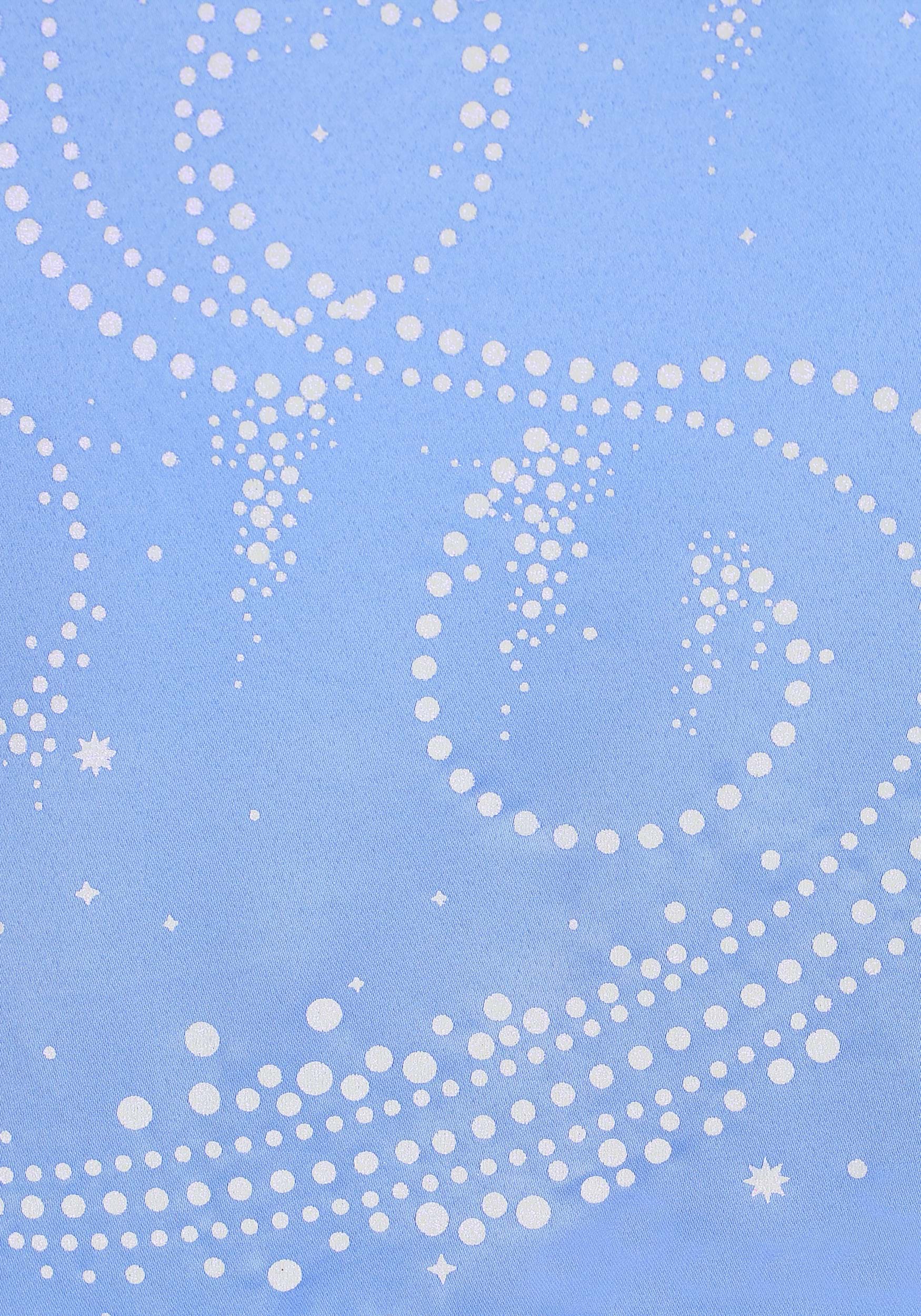 - Dress bodice is jersey knit with front overlay of ice blue glitter organza