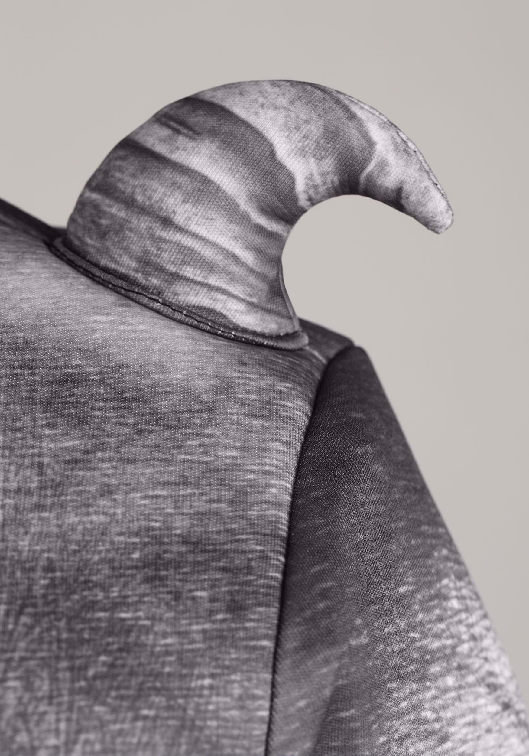 - One piece dress has zipper closure at center back fiber filled chest; with fiber filled shoulder spike, stretch knit abdomen with sublimed print