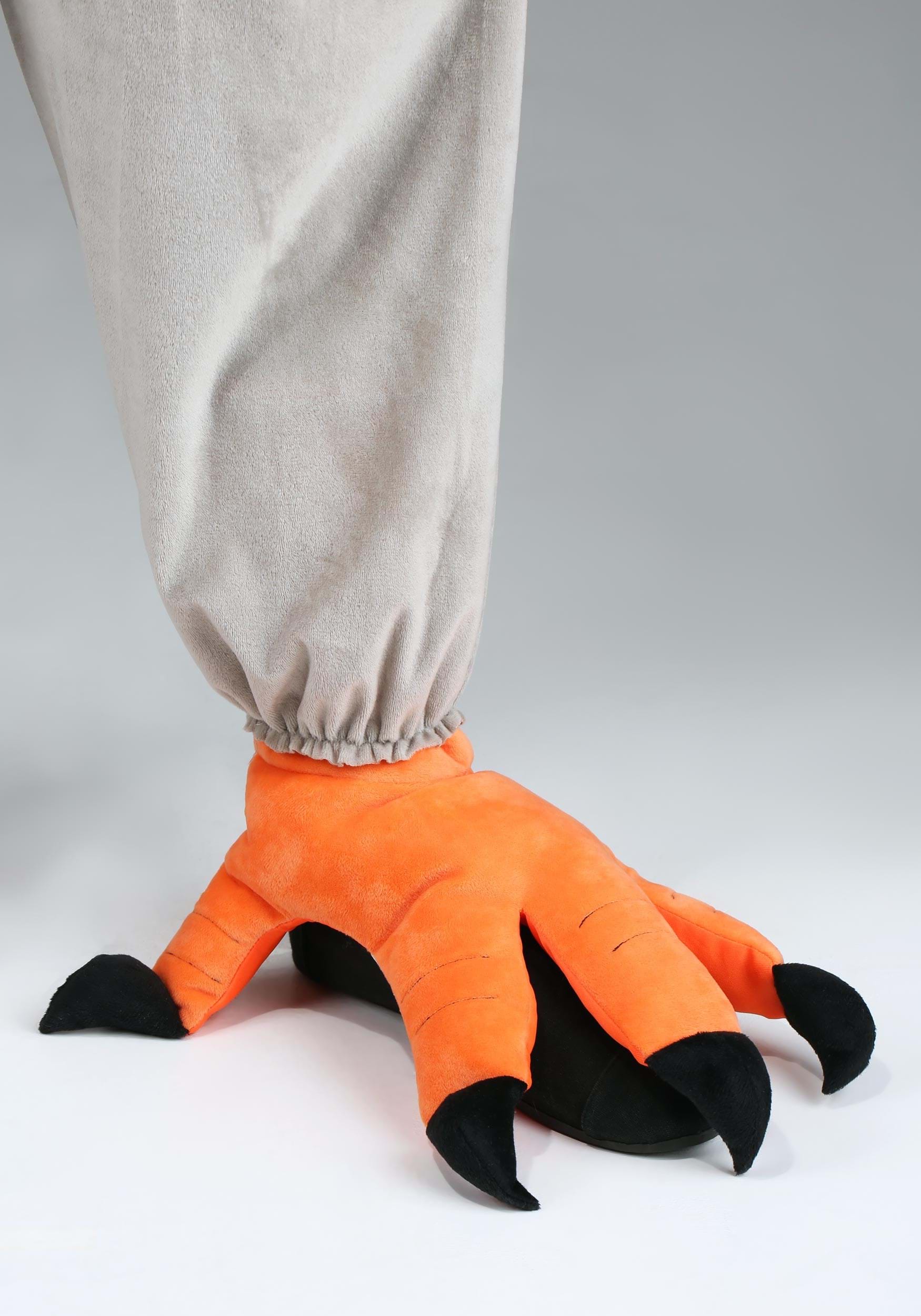 This Made By Us Pigeon costume is sure to be a blast at your next costume party. The costume features a soft gray jumpsuit that secures up the back with hook and loop fastener. The sleeves are flared to look like wings and have a wavy pattern to look like feathers. A tail flapping on the back has the same wavy pattern. Complete with an adorable pigeon hood and orange pigeon claws that fit over your human shoes, this pigeon costume is sure to make you feel like you've got some serious street smarts.