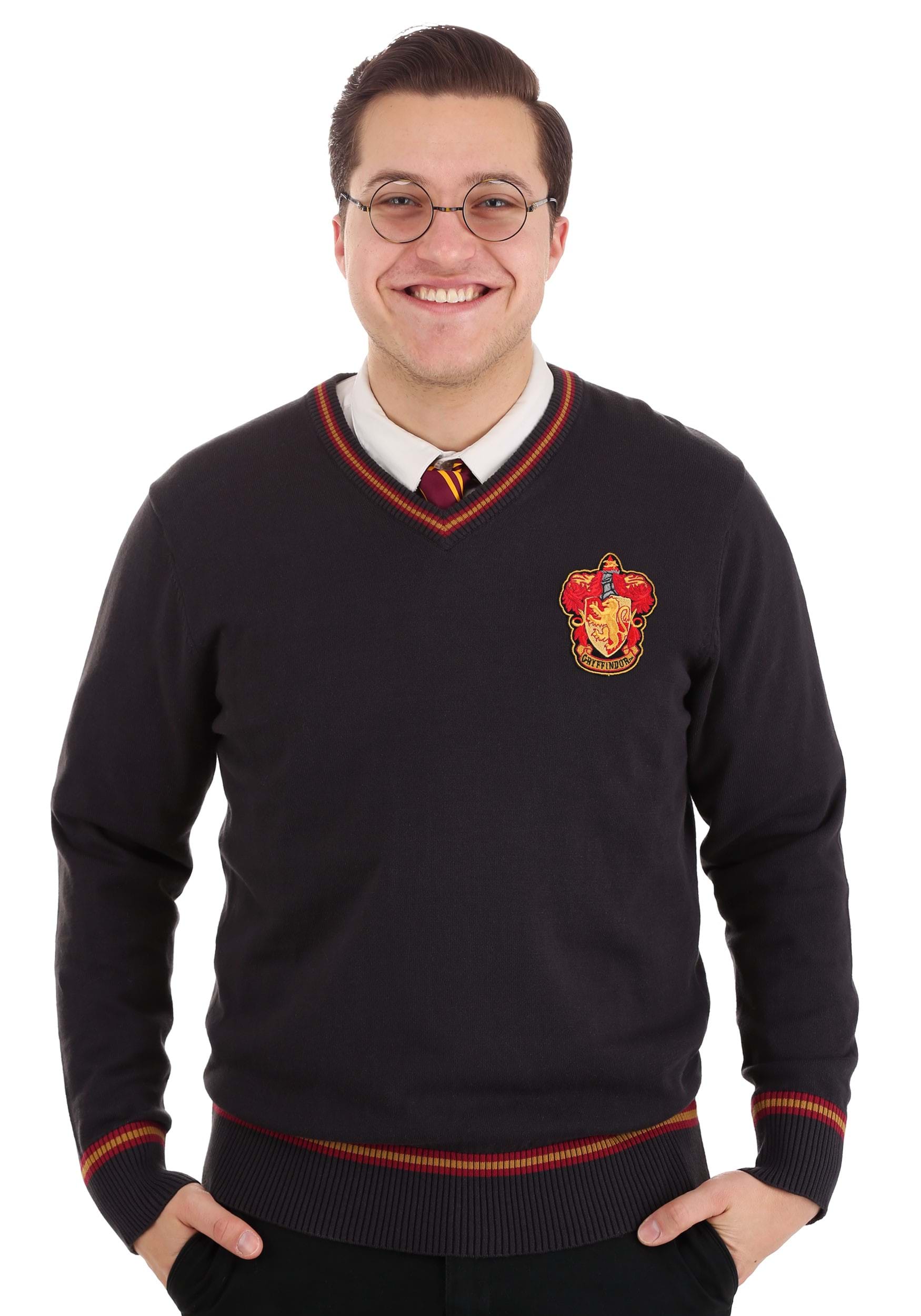 - Soft v-neck sweater has a Gryffindor patch on the left side