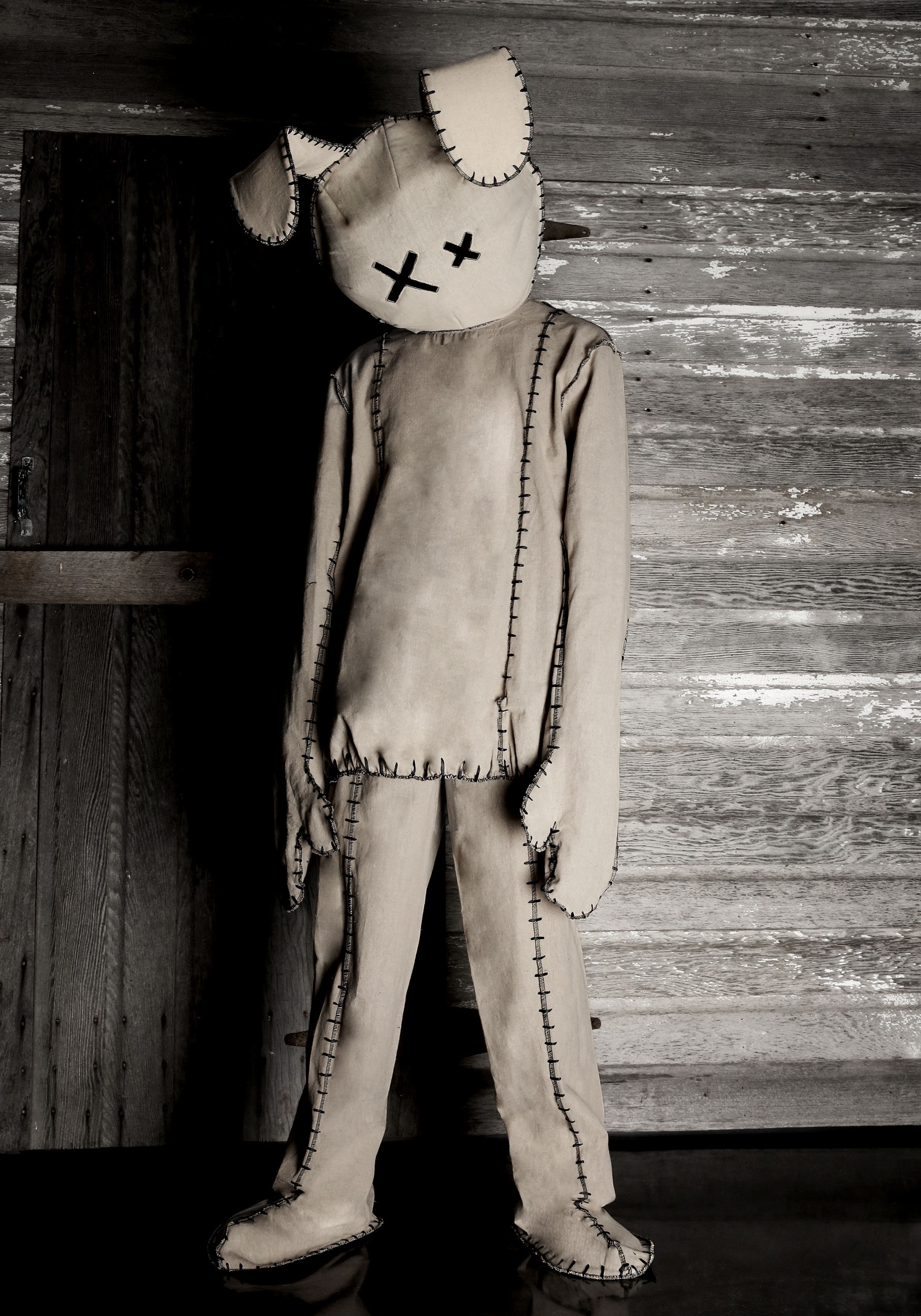 For your next costumed event give this aged bunny suit another chance. Sure, it doesn't have the cheery personality that it once had but it sure has gained character. The over-sized head has uneven eyes and floppy stitched ears. It's paired with a tunic with attached mitts and pants with attached boot covers, giving your lifeless bunny a cohesive look. This bunny might not reinvigorate your hippity hoppity but at least your character will have plenty of. . . well, character.