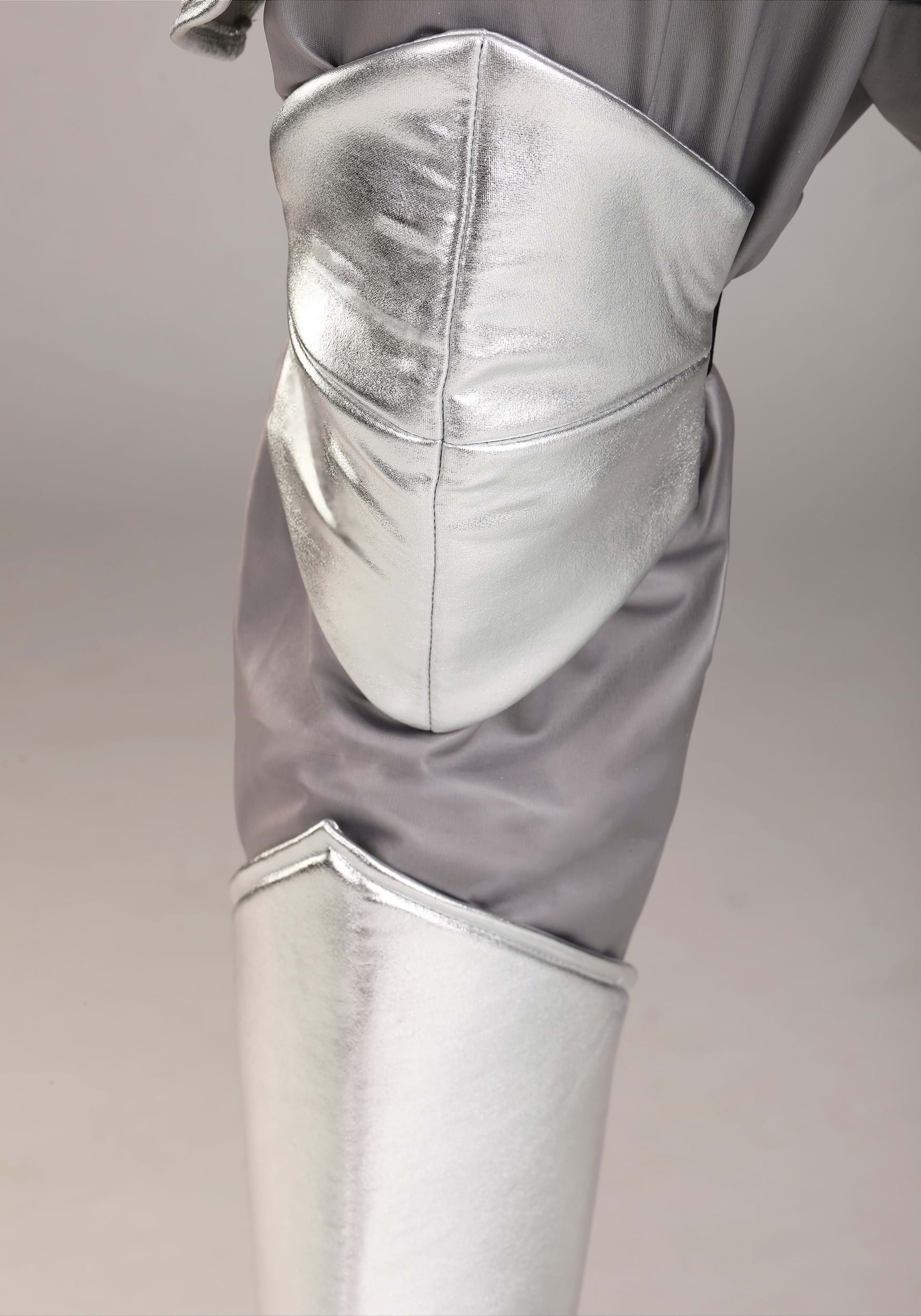 - Foam and metallic lame boot covers have elastic bands to secure under feet