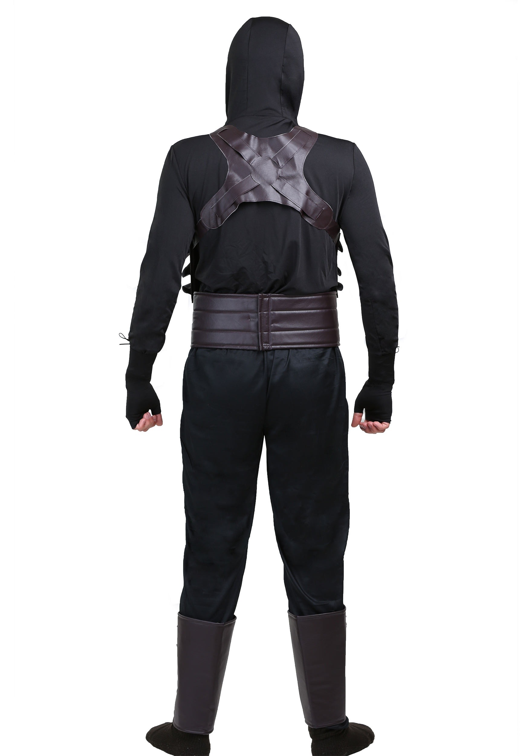 This exclusive outfit gives you the full shinobi experience. The costume comes with a black shirt and pant set, perfect for hiding in the shadows. It also includes faux leather leg guards, arm gauntlets, and a belt. Additionally, it features a chest harness for carrying your ninja gear, such as shuriken, kunai, and nunchaku. The costume also comes with a ninja mask, ensuring your identity remains hidden. The detailed design ensures you look the part, whether you’re at a costume party or a themed event.