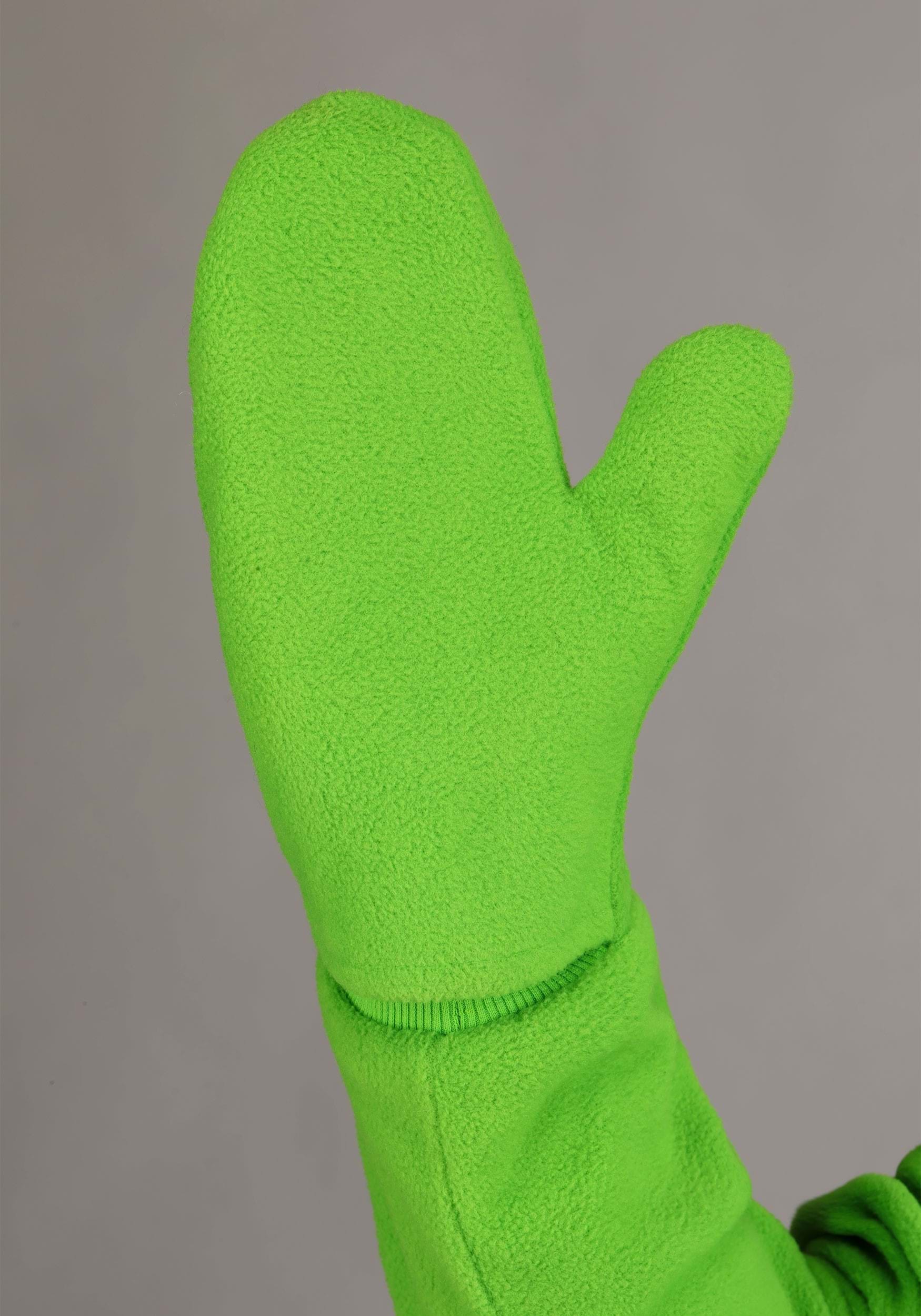- Mitts sewn to sleeve cuffs can flip back to free the hands