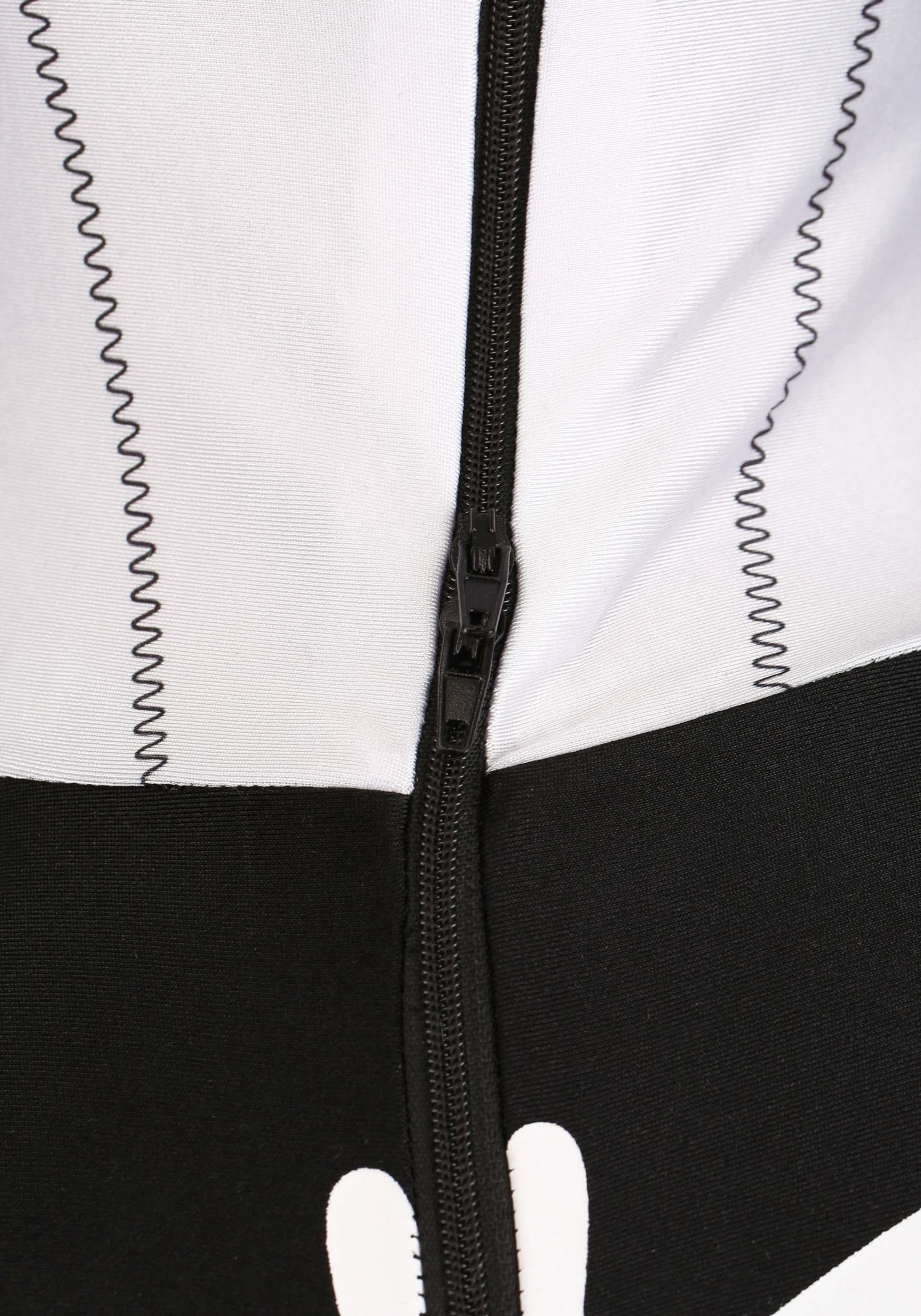 Enjoy your typical school Halloween party with all of its pranks and karate smackdowns in this exclusive, officially licensed Plus Size Authentic Karate Kid Skeleton Suit for Adults! The black jumpsuit zips up the back and is made of a comfortably stretchy polyester and spandex blend. It's printed on the front and back with full-scale graphics of a skeleton. The feet are fully enclosed - no need to hunt for matching socks! - and white gloves hide your hands. The attached white hood covers the top and back of your head, with an opening for your face.