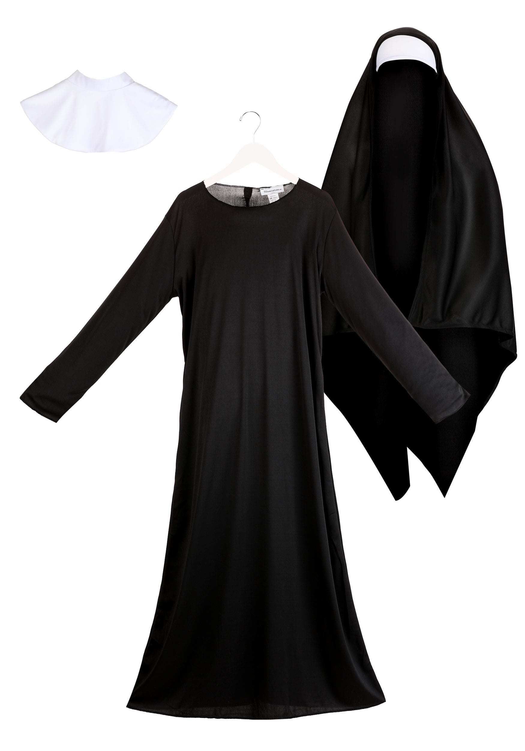 This plus size nun costume does include the dress, collar, and veil.