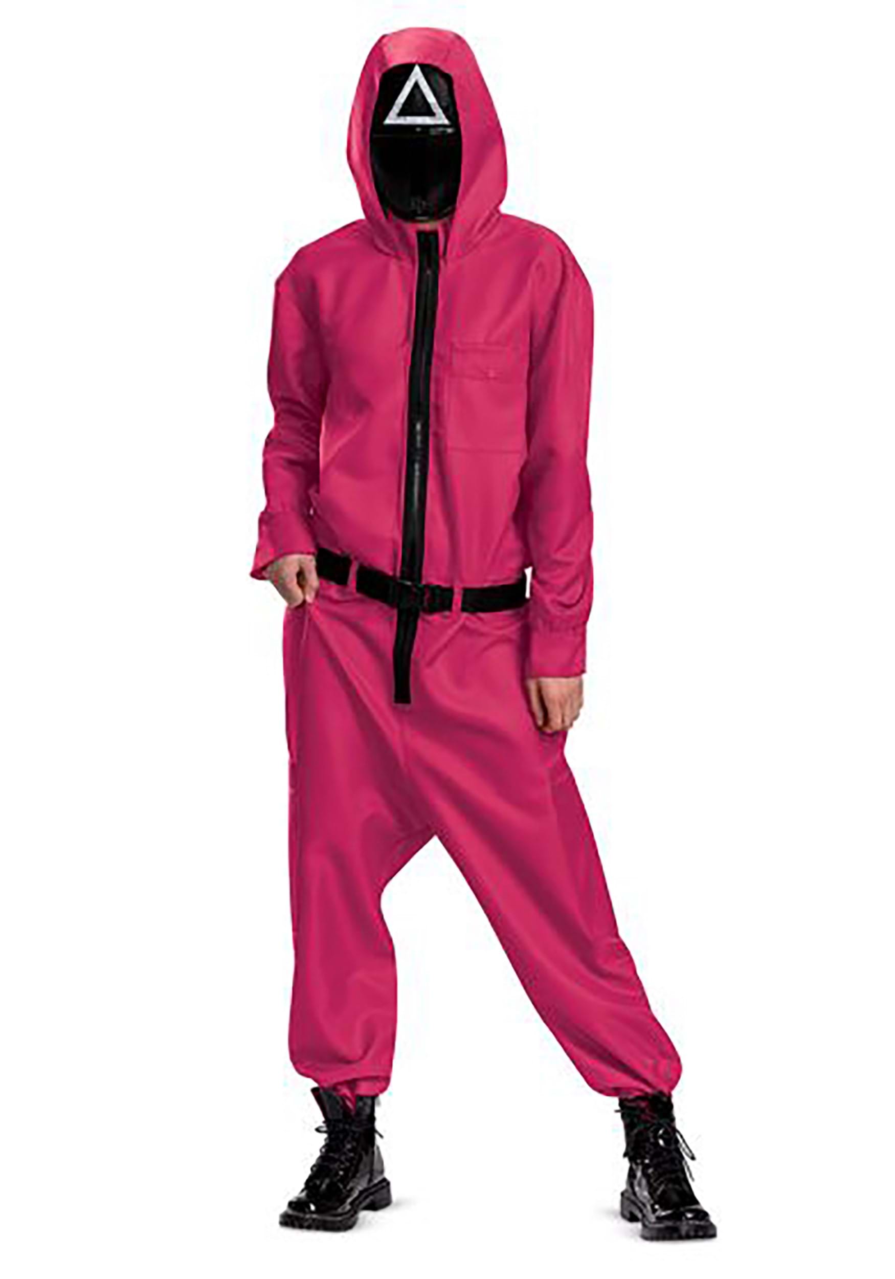 This is a Squid Game Adult Triangle Guard Jumpsuit.