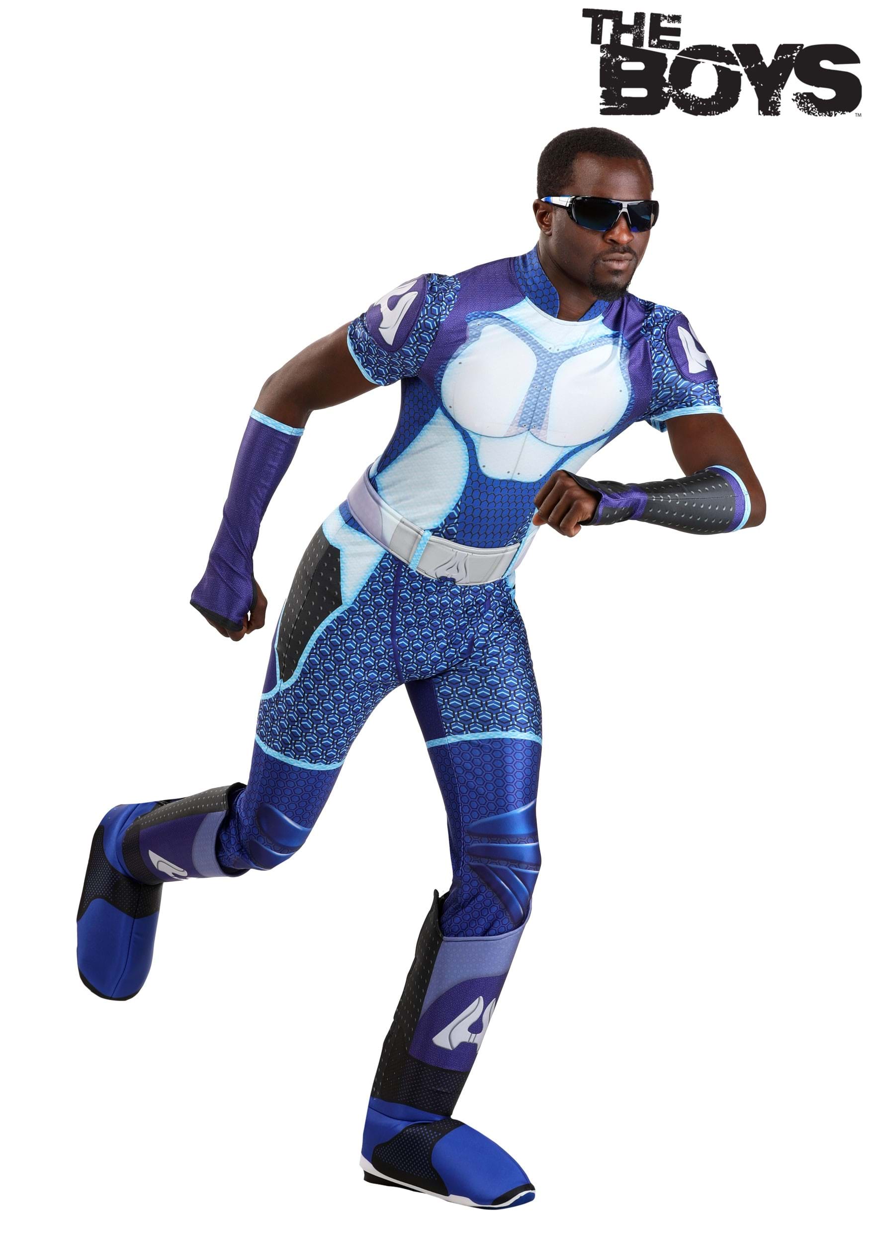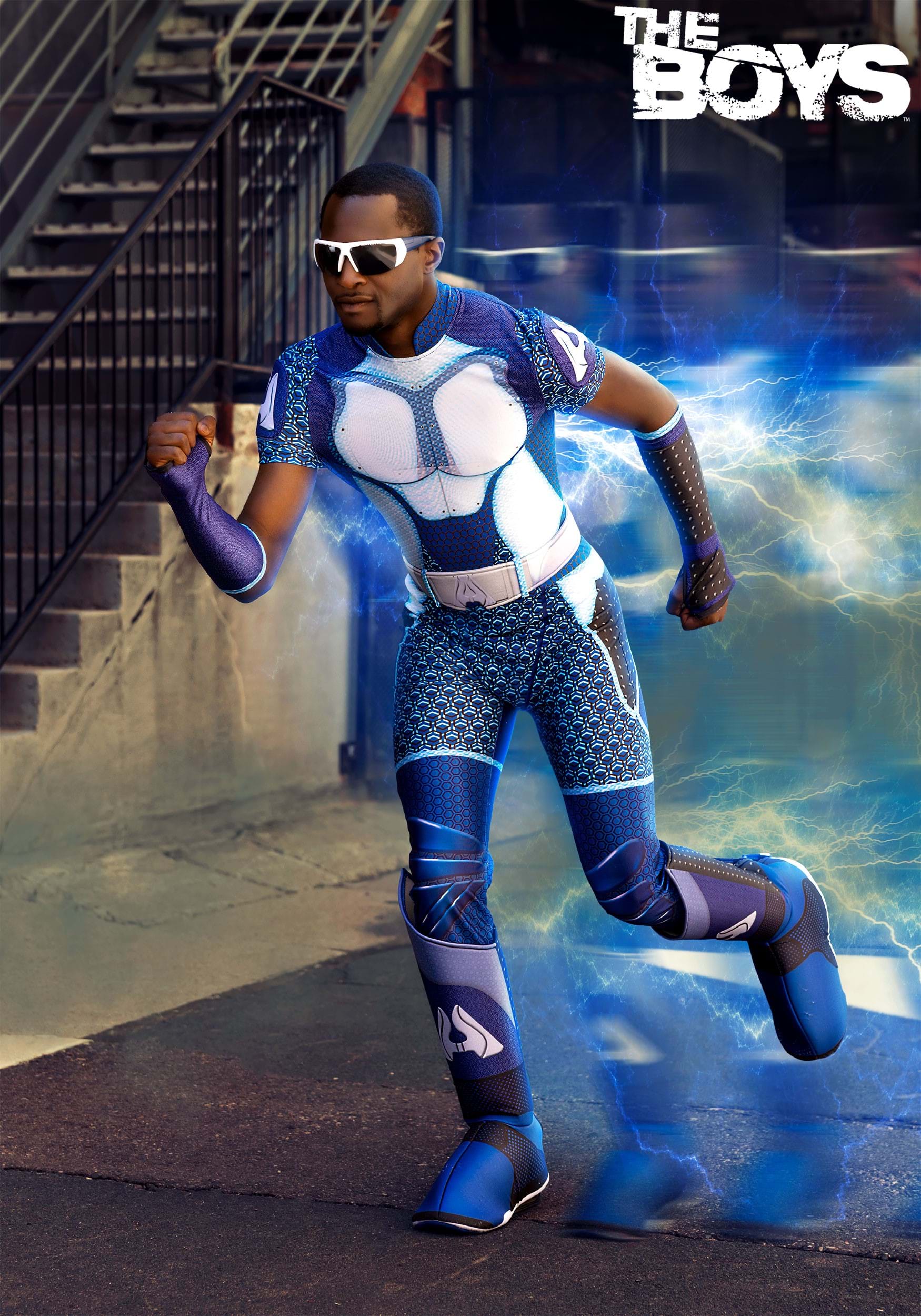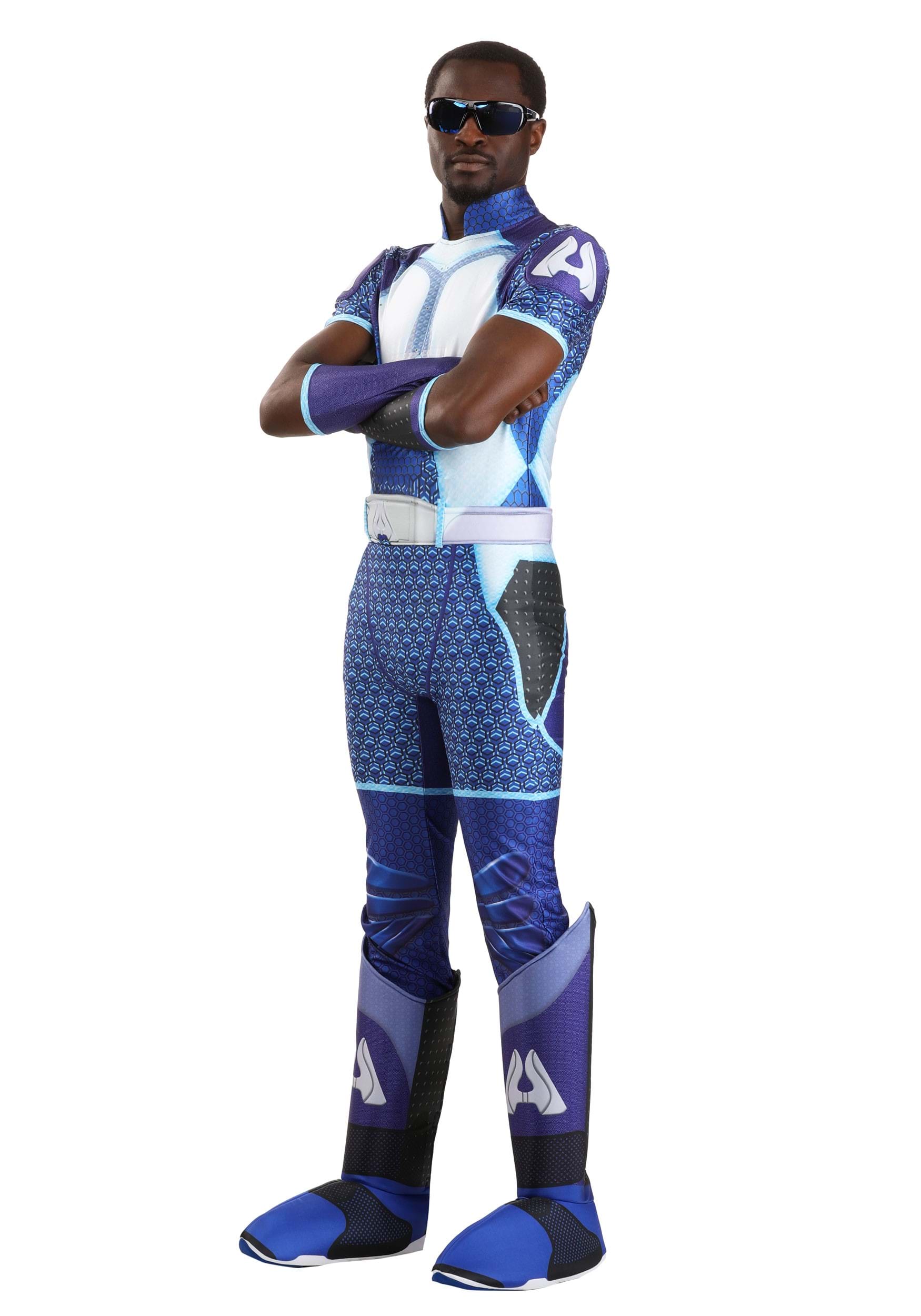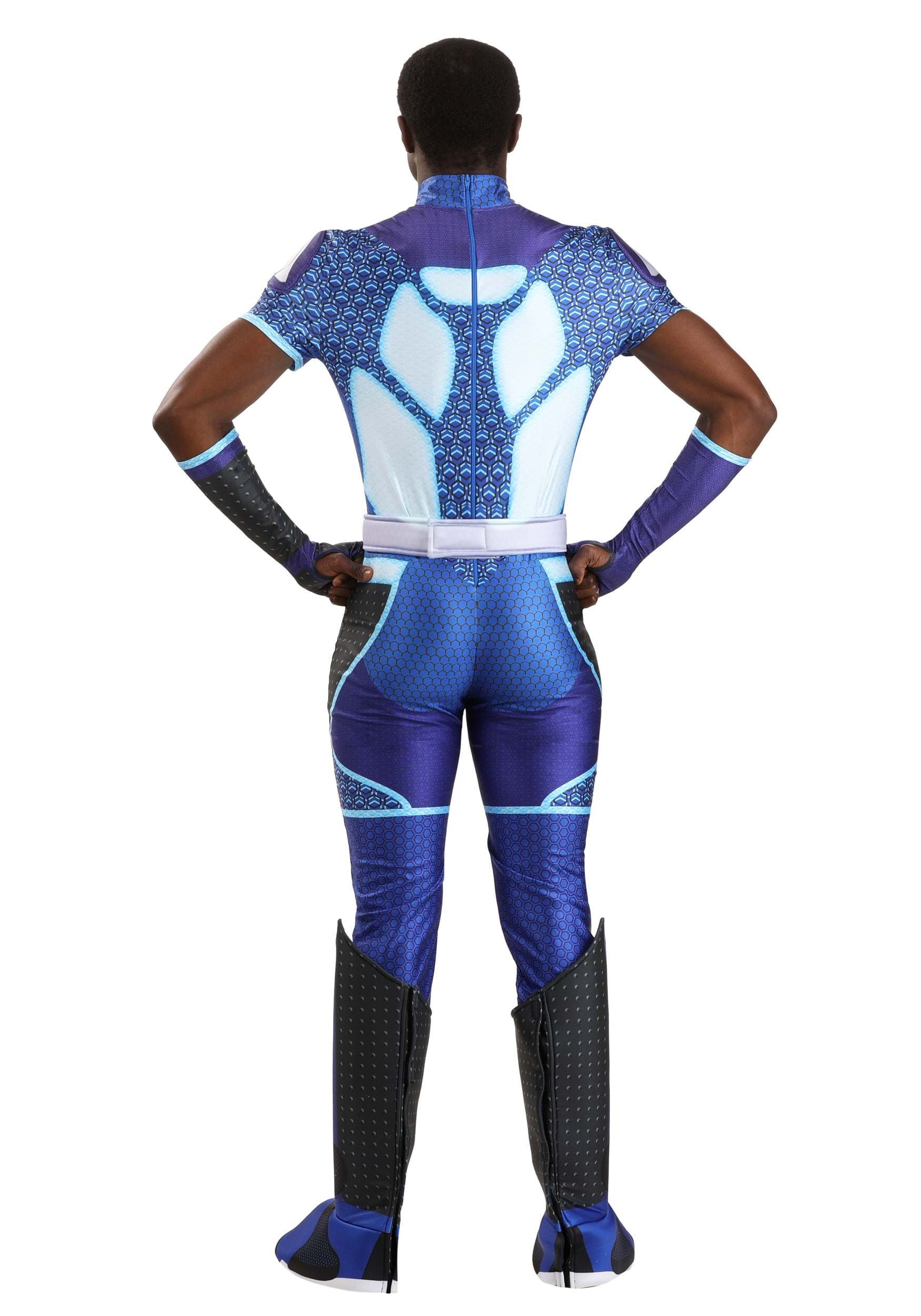 - Spandex jumpsuit has sublimated graphics, zipper down center back, thin foam shoulder emblems