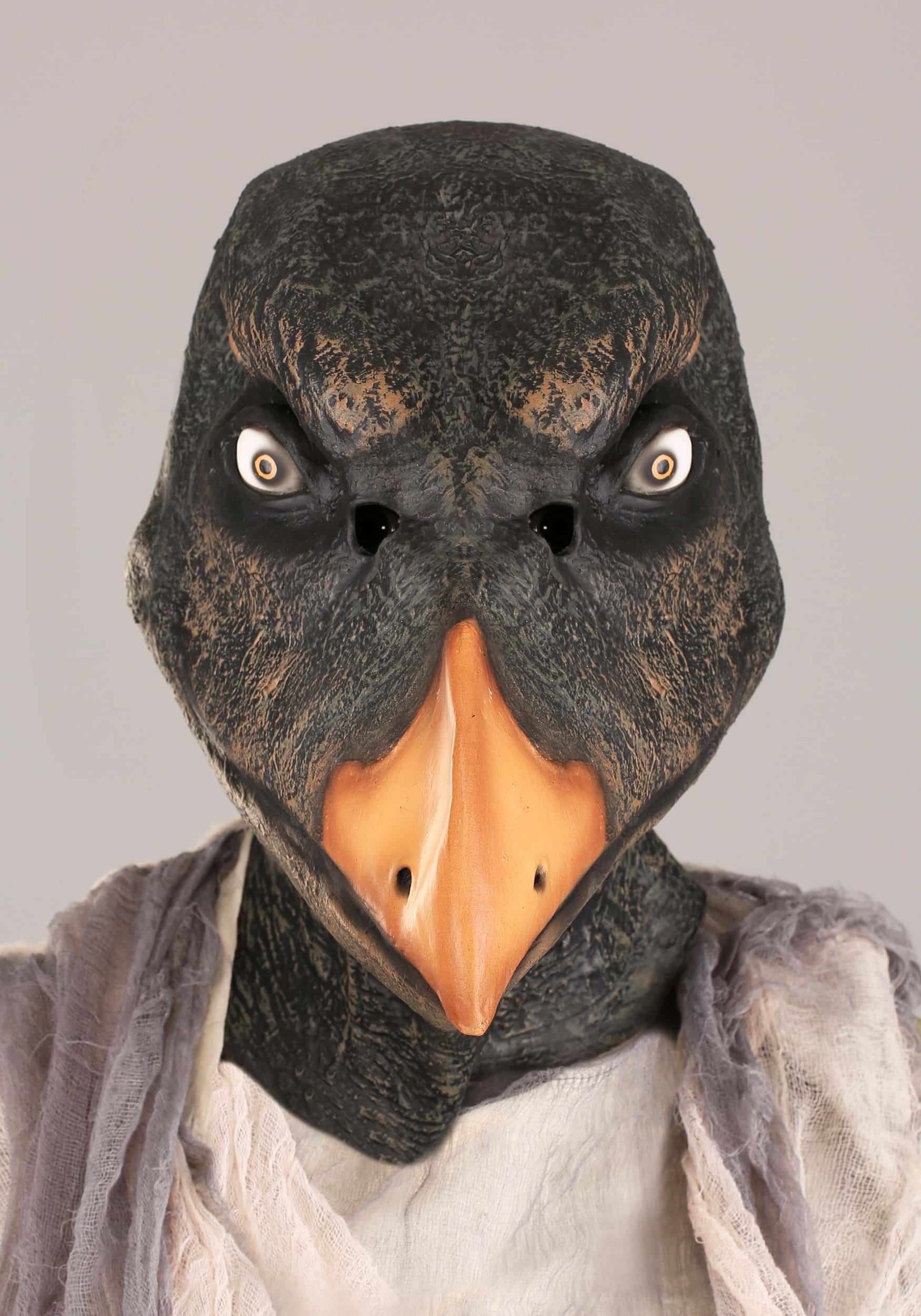- Molded latex full head mask has small eye openings that will restrict vision