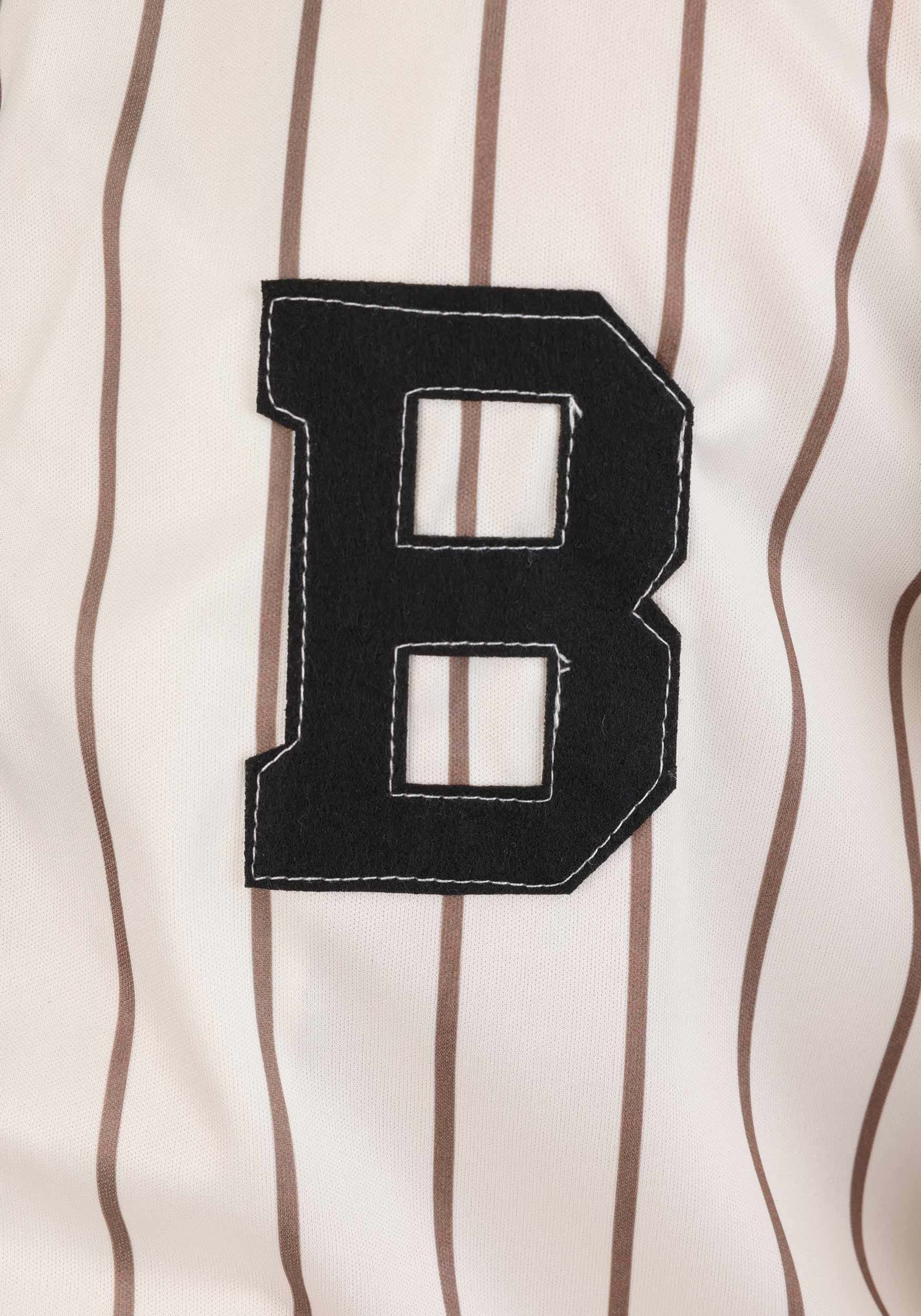 - Black letter B appliqued on left breast of shirt and on front of cap