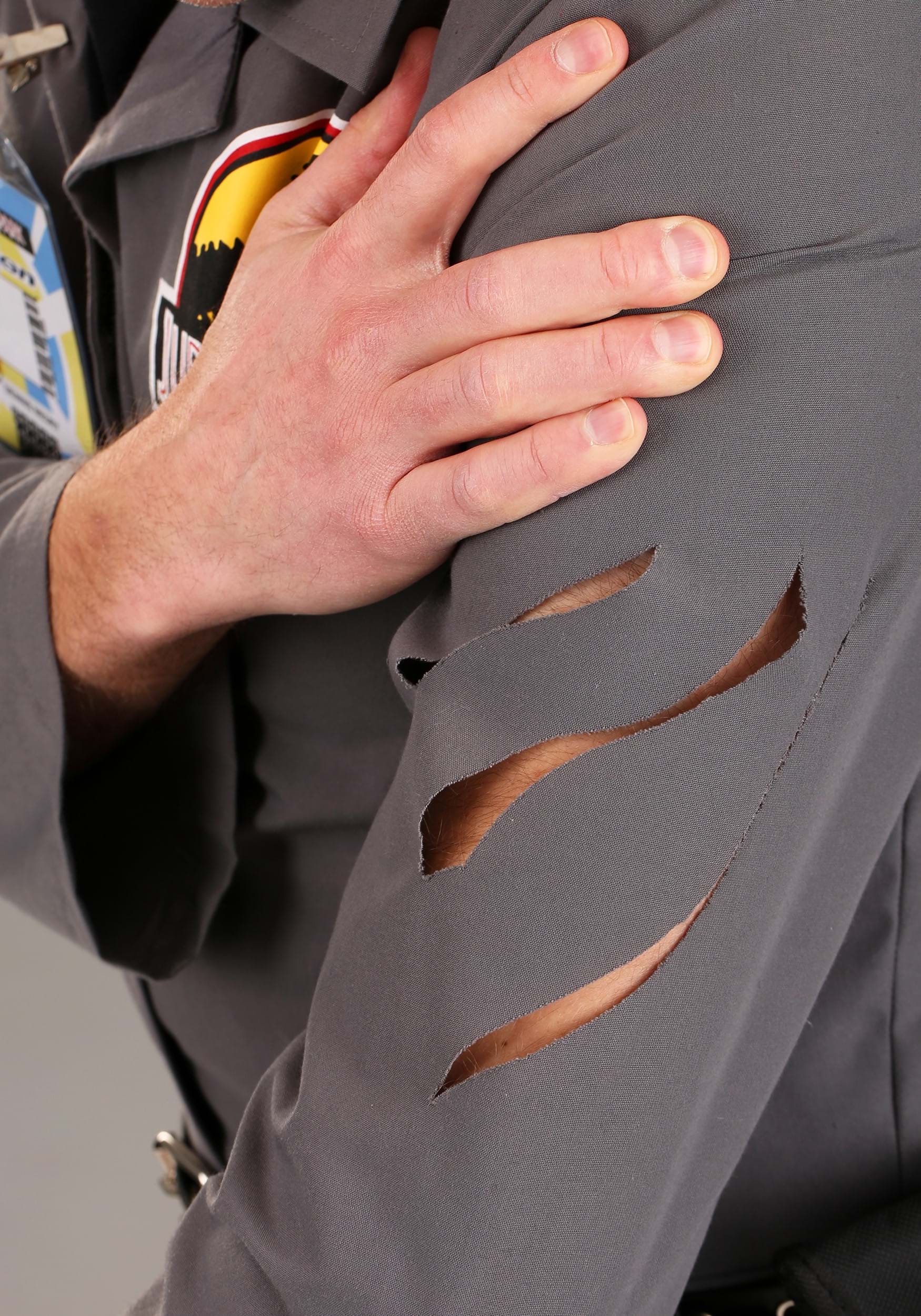 Slip into this exclusive Jurassic Park Employee Costume for Adults and be instantly tranformed into a privileged person who sees incredible animals on a daily basis. Your friends will beg you to take them to work with you - as long as you stay alive! The gray jumpsuit is super comfortable: perfect for lifting heavy feed containers or for running for your life. The "Jurassic Park" patch near the left collarbone gives that extra touch of authenticity. The orange hard hat with the matching logo keeps the uniform OSHA-compliant, but hasn't been tested yet against Tyrannosaurus teeth. Oh well! We'll probably never have to worry about that.