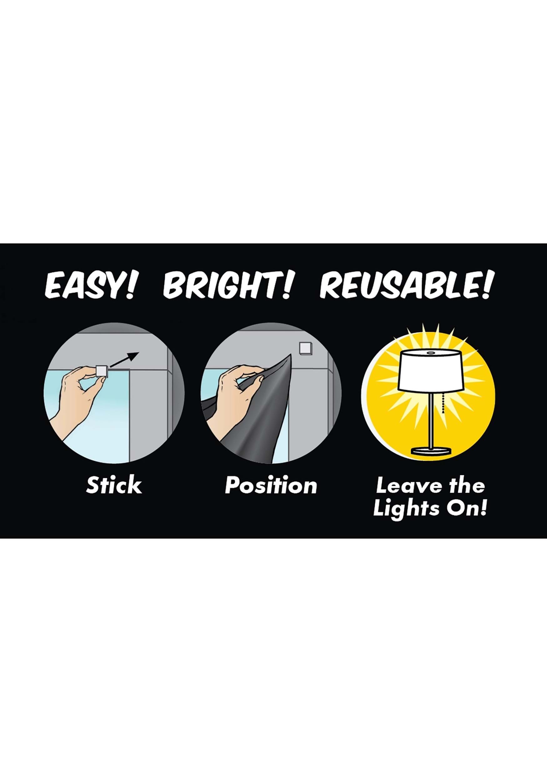 Constructed from durable plastic, this 34.5" x 60" poster is ready for action. Slap it on the window, apply the reusable stickers, and voilà, magic ensues! Crafted to be backlit by your room's light, it sets the stage for the most extraordinary transformation come night.