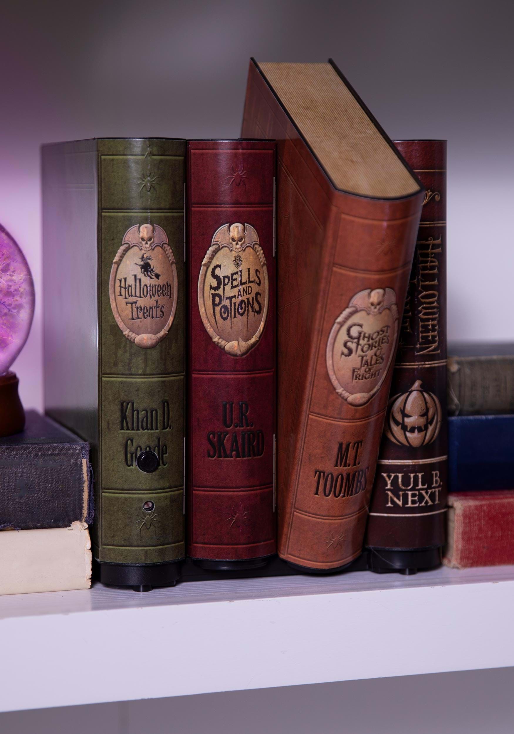 Assuming that your house isn't already teeming with spirits, most ghost story fans start looking for ways to make their homes creepier come autumn. After all, you're in a spooky mood. Why shouldn't everyone else who comes into your home sympathize? These unassuming moving books are sure to get the spines of both young and old Halloween revelers tingling! It's time to turn a page in your Halloween decor and get interactive! Running on AA batteries, these books move about whenever anyone comes too close. Anyone who gets too scared ought to start judging books by their covers! With hilarious author pun names, these books will be trick and a treat even when they're turned off!