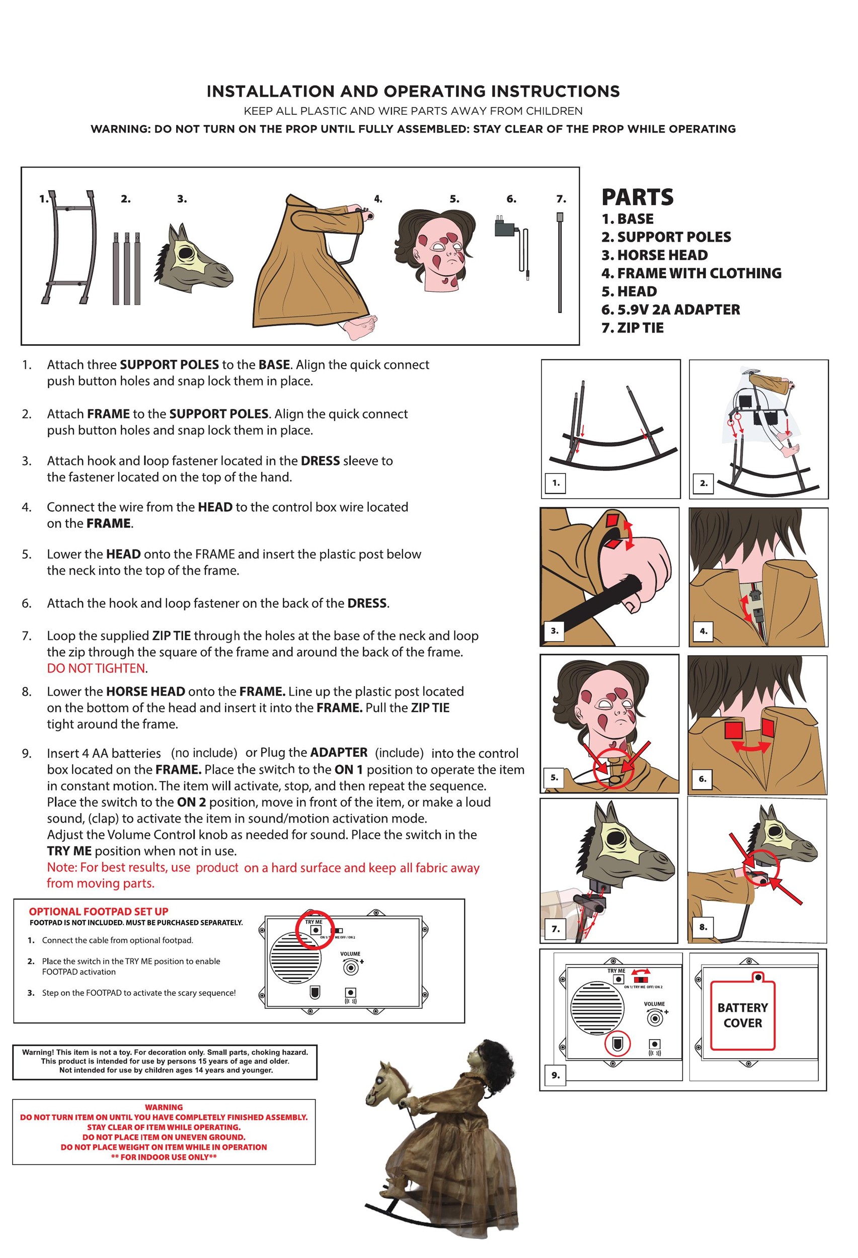 - Dress:100% polyester animated rocking horse with doll