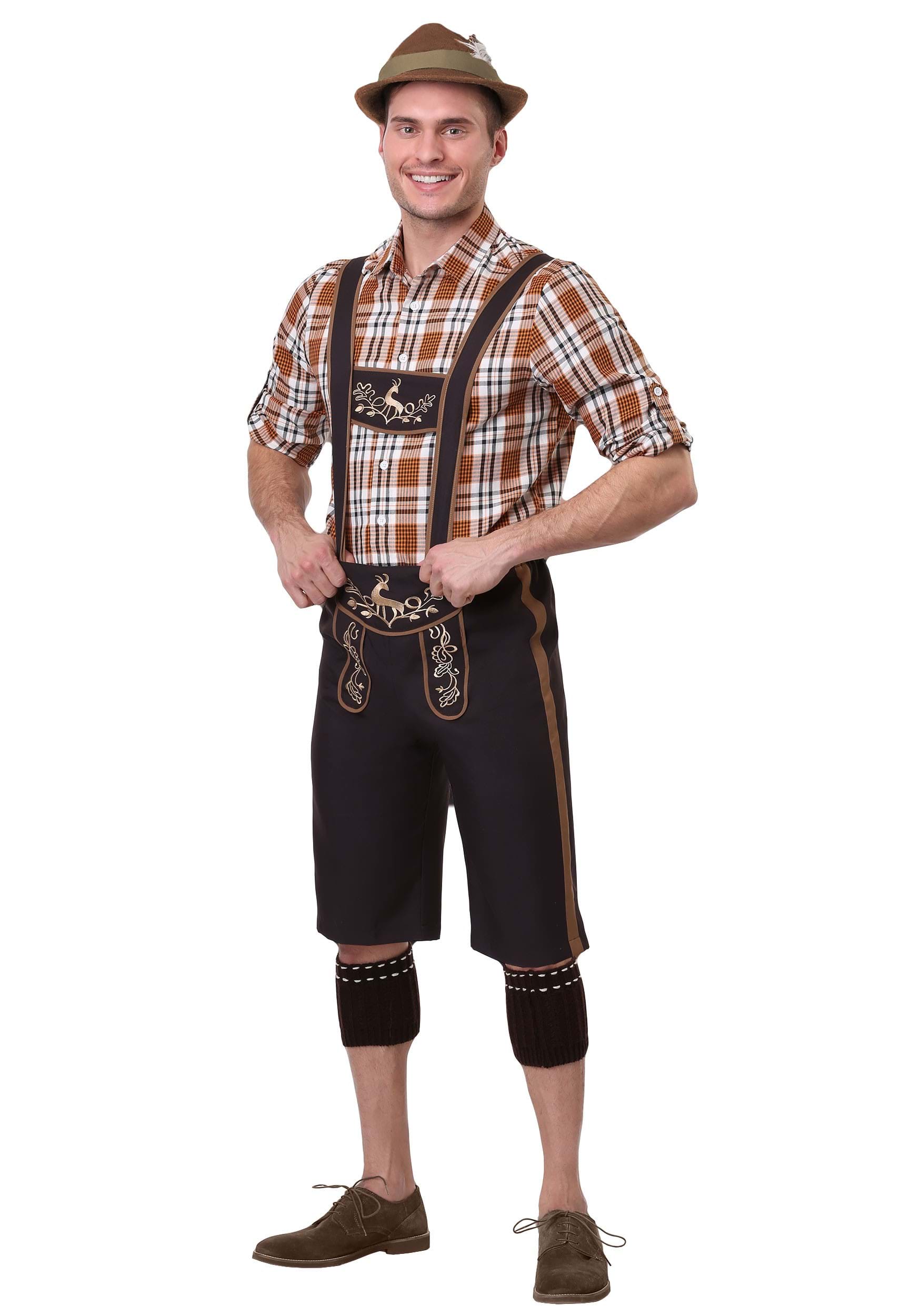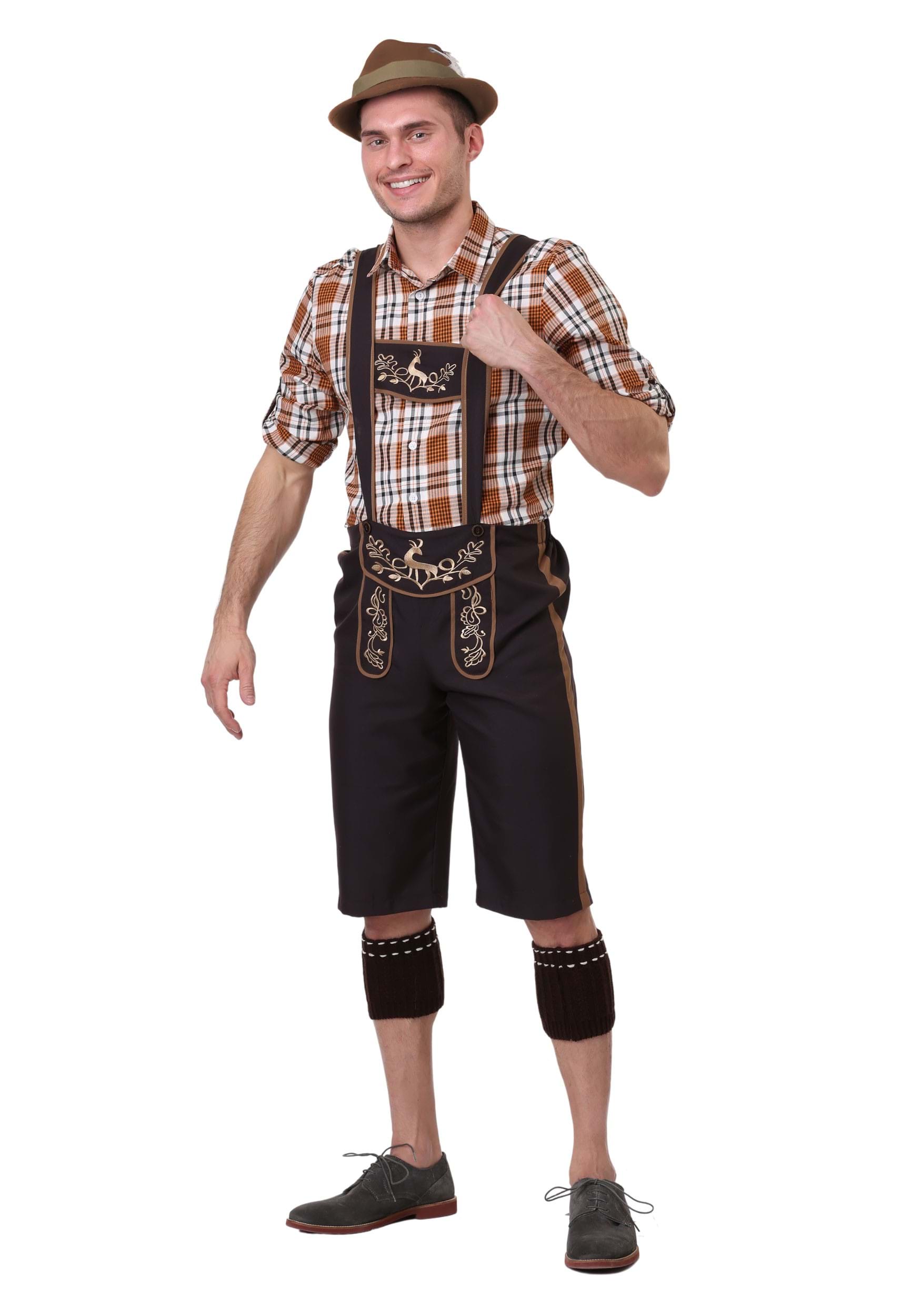 - Shirt: 100% cotton; lederhosen: 100% polyester