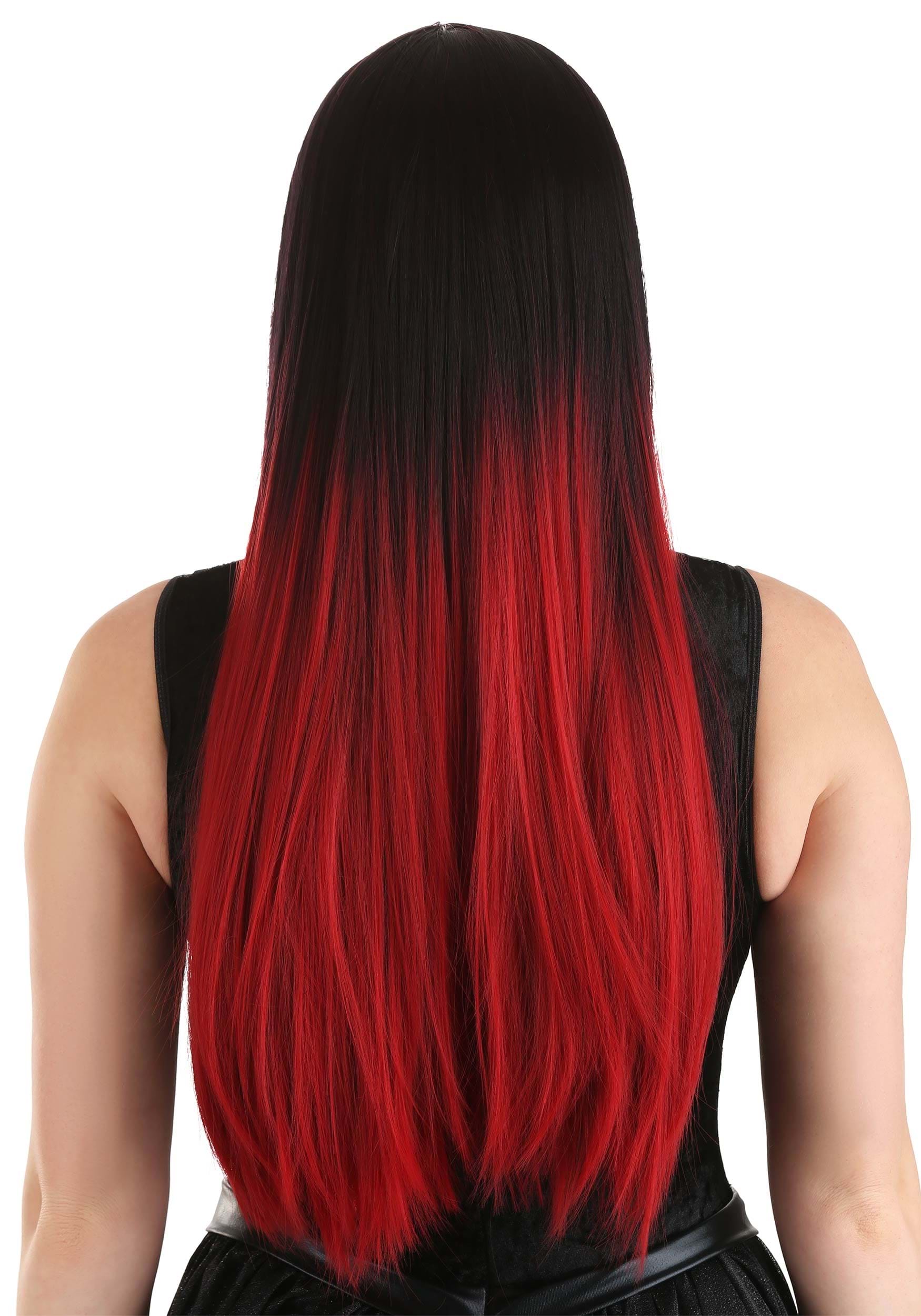 Black and Red Ombre Wig for Adults
