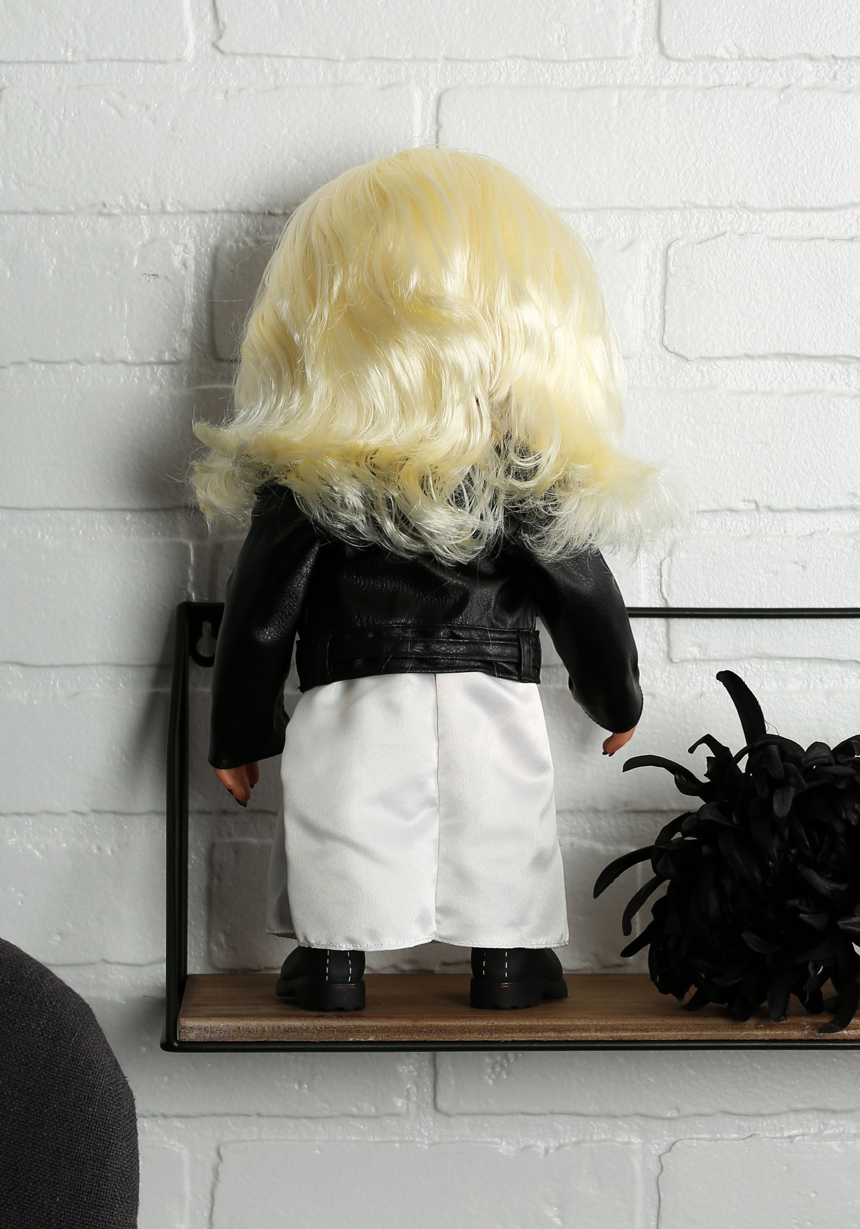 The officially licensed Bride of Chucky talking doll is every horror collector's dream come true (or should we say 'nightmare?'). At over a foot tall, Tiffany is dressed exactly like her movie counterpart, sporting a nameplate necklace, faux leather jacket, and lace wedding dress of course. Fans will love the tiny details like the painted beauty mark, heart-shaped tattoo, and mega-arched eyebrows. Give her a squeeze and Tiff recites a variety of phrases from the movie such as, "Oh, Chucky, look at us. Don't you see we belong dead" and "Hold still honey or I am going to poke you in the eye again". She'll arrive in a bold black box with a large window, making it great for horror displays. With perfectly molded features and an unhinged expression, Tiffany is so realistic it's creepy!