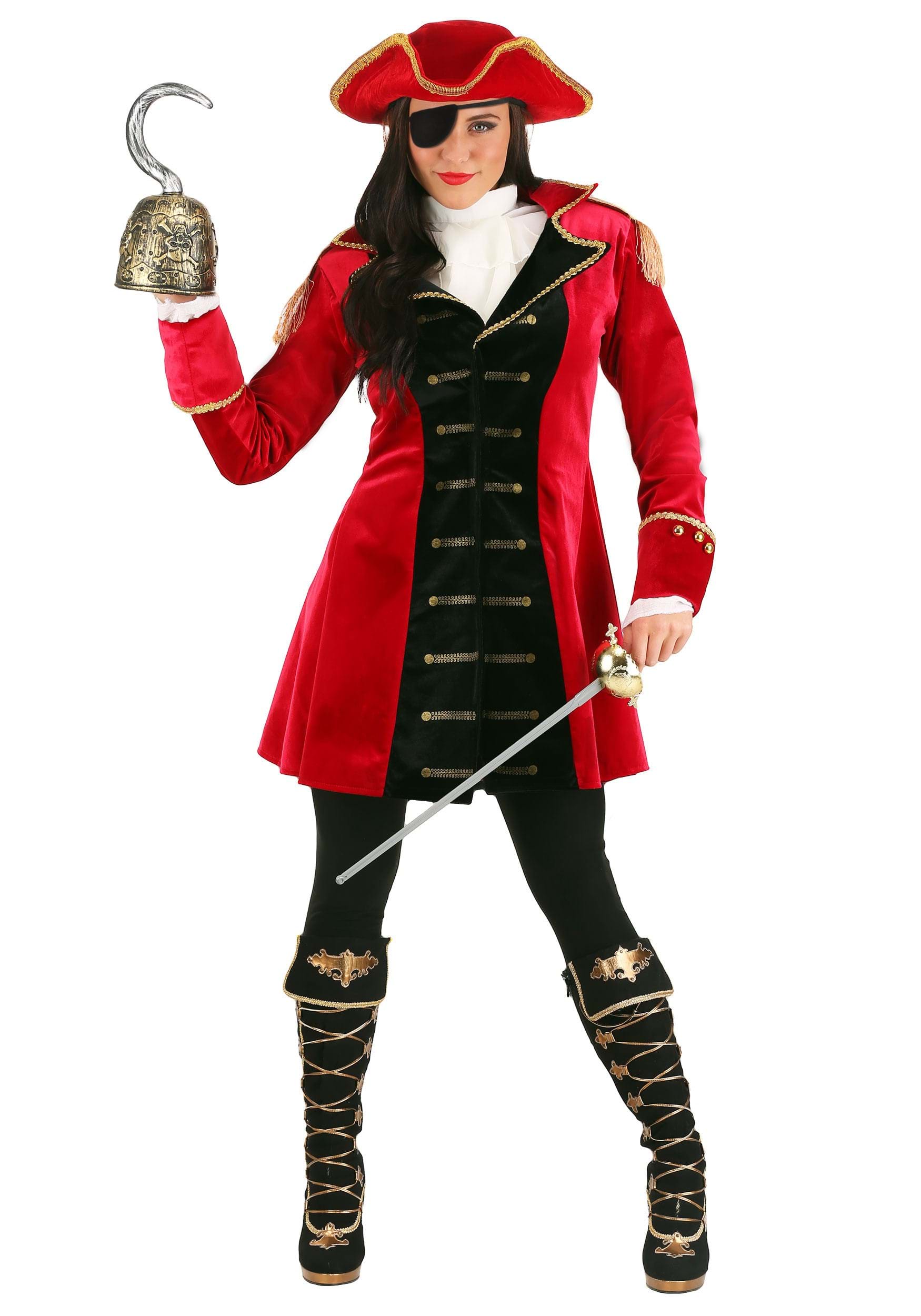 Why settle for being the scourge of the Spanish Main when you can rule both earthly and fairyland seas? Strut the decks with confidence and swagger in this Captain Hook Costume for Women. The red jacket only bears a slight resemblance to the one you originally stole from one of the King's soldiers (before you murdered him, of course.) Since then, you've tricked it out with gold epaulets, buttons, and braid - nothing but the finest for the finest pirate in history! A crisp off-white cravat shows that even though you're a salty dog, you appreciate the finer things of life. As for the eye patch, well, losing a little thing like an eye will never get you down when you have such a nice accessory as this!