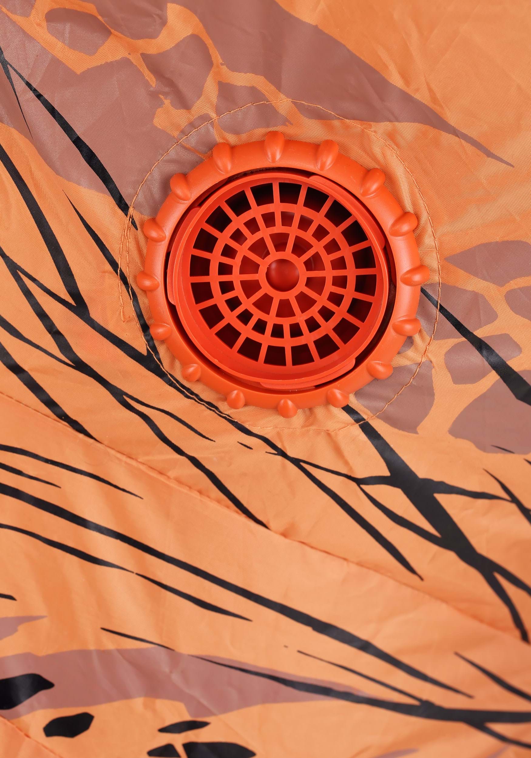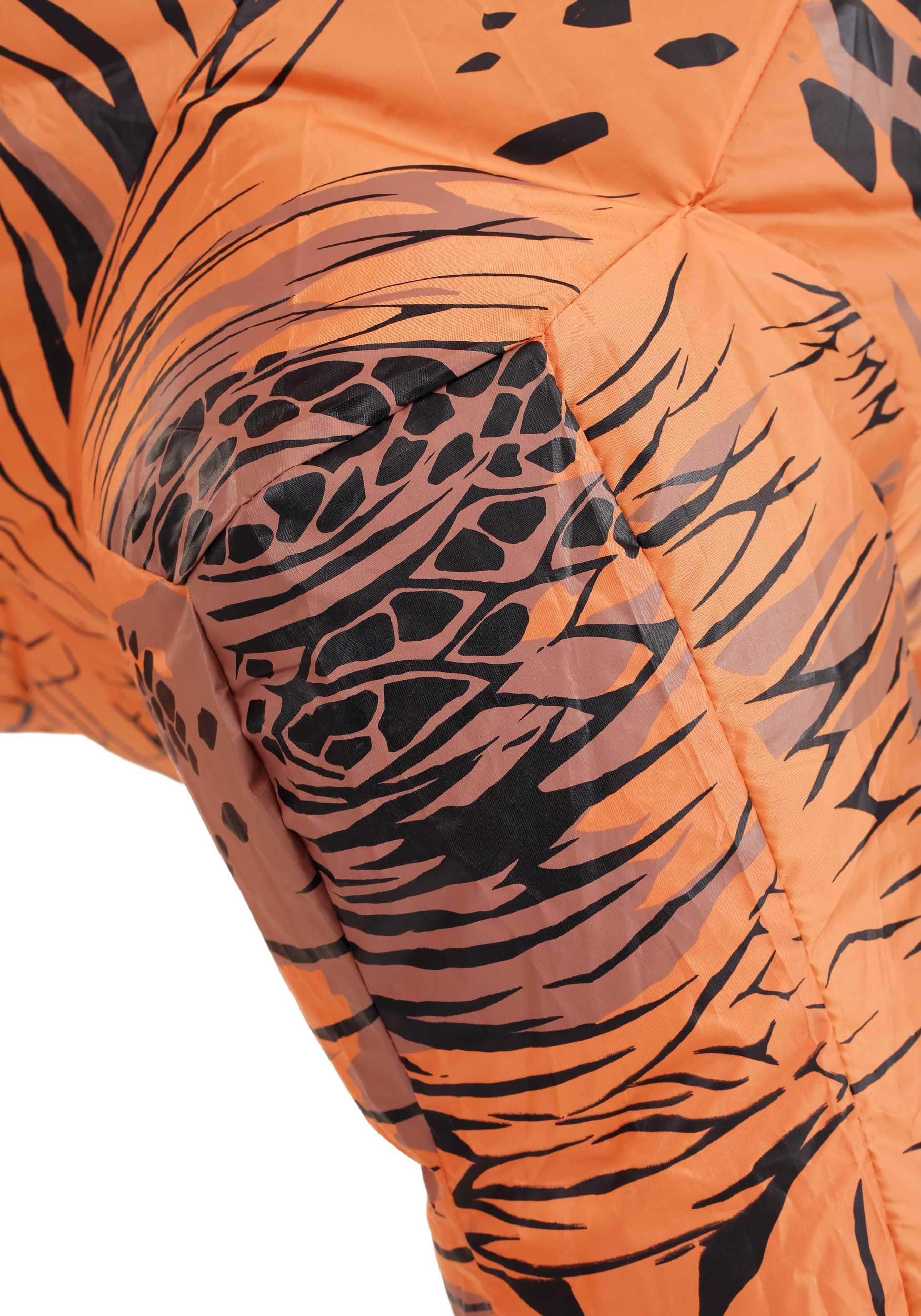 Suit your kiddo up in style with this Inflatable T-Rex Kid's Costume! This polyester jumpsuit is easy to step into and features elastic at the wrists and ankles to keep the costume in place. It zips up the front, so no trouble with any buttons or hook and loop fasteners. A few AA-batteries and the flip of a switch activates the fan just over the hip and, in no time, your kiddo's dinosaur look is roaring to life! We include a drawstring cord where your kiddo's face sticks out below the T-Rex head, too, so they'll have a secure fit and full visibility while going on their dinosaur rampage. Team up with a hoard of other dinos for some serious fun or just enjoy watching them perfect their awkward athletics.