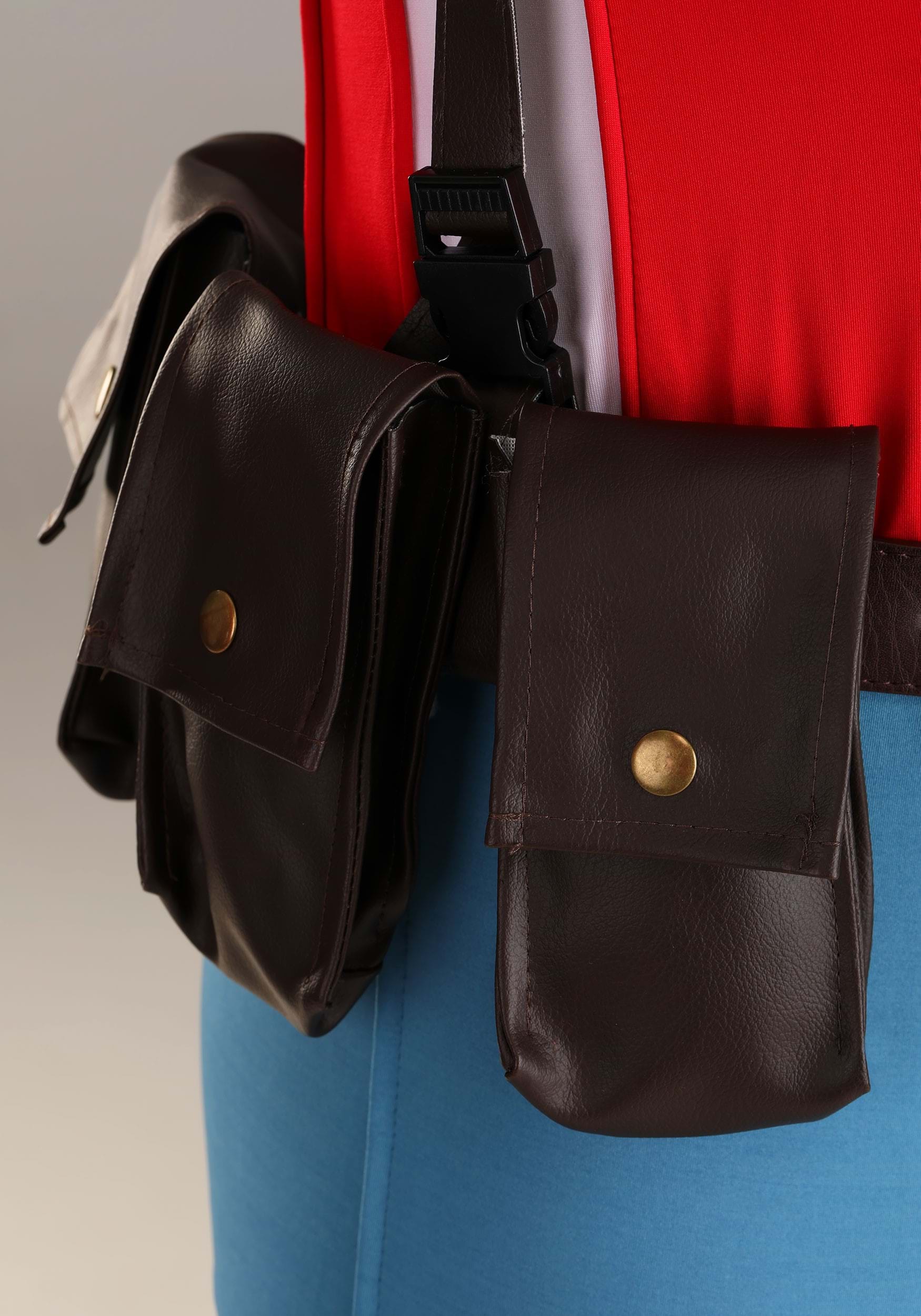 - 6 faux leather pouches slide onto belt, fasten w/ metal snaps