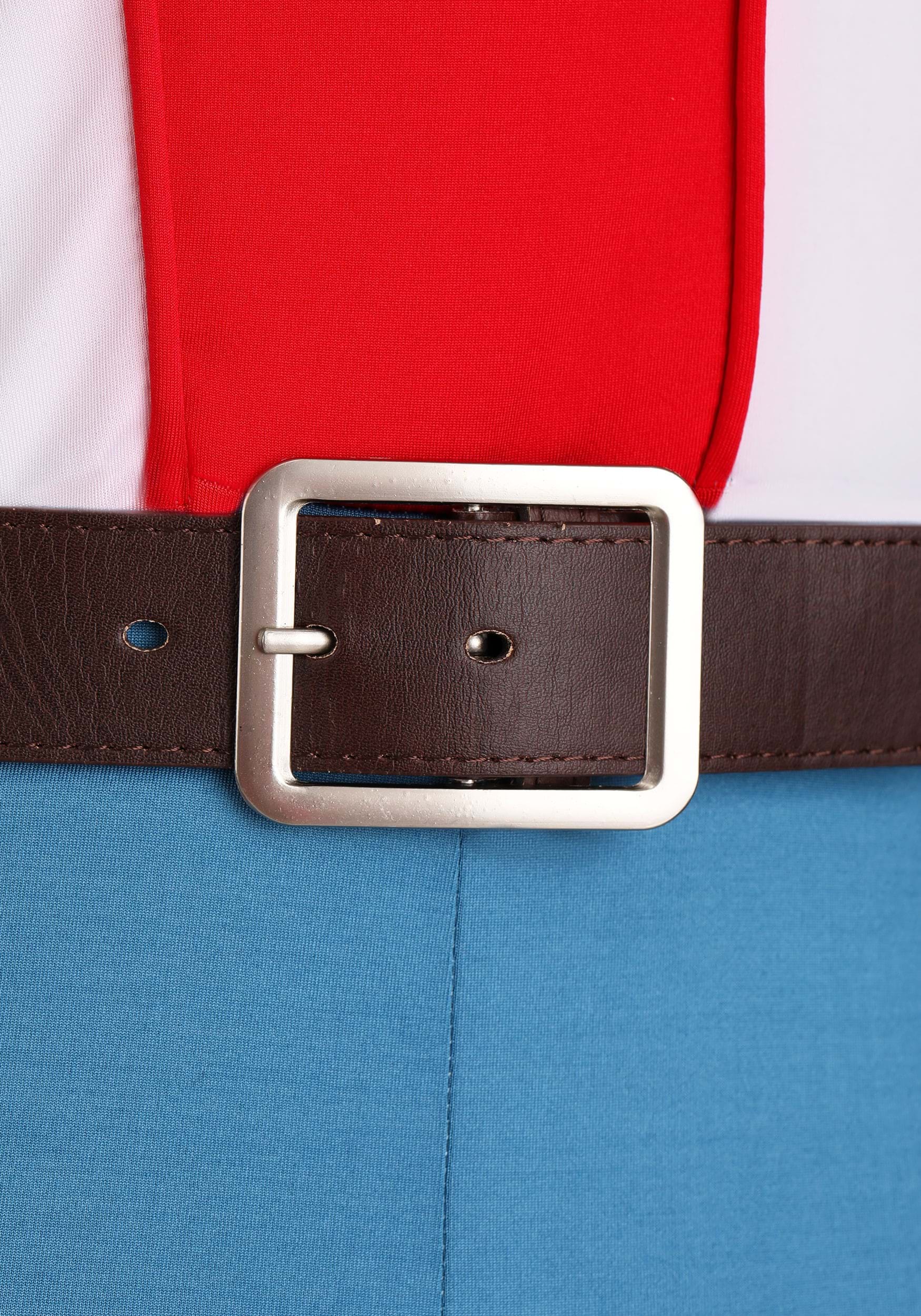 This Captain America costume is the real deal. The jumpsuit comes in the bright reds, the blazing blues, and clean whites of his traditional outfit from the comics. It's made out of a spandex blend fabric, so it stretches for a form fit. It fits with a zipper in back and even has functional pockets on the thighs. The appliqued stars and stripes add a patriotic style to the look that would make Captain Rogers proud! The belt and harness are both made out of faux leather material and even come with satchels that slide on the belt. The gloves add a pop of red and also look great when you're striking heroic poses at the next cosplay event! The boot covers fit over any pair of shoes and the vinyl mask has a realistic look that almost looks like it came straight out a movie from the MCU. Finally, this costume comes with a 24" shield that straps to the back of the harness. Put it all together and you'll have the look of a tried and true hero!