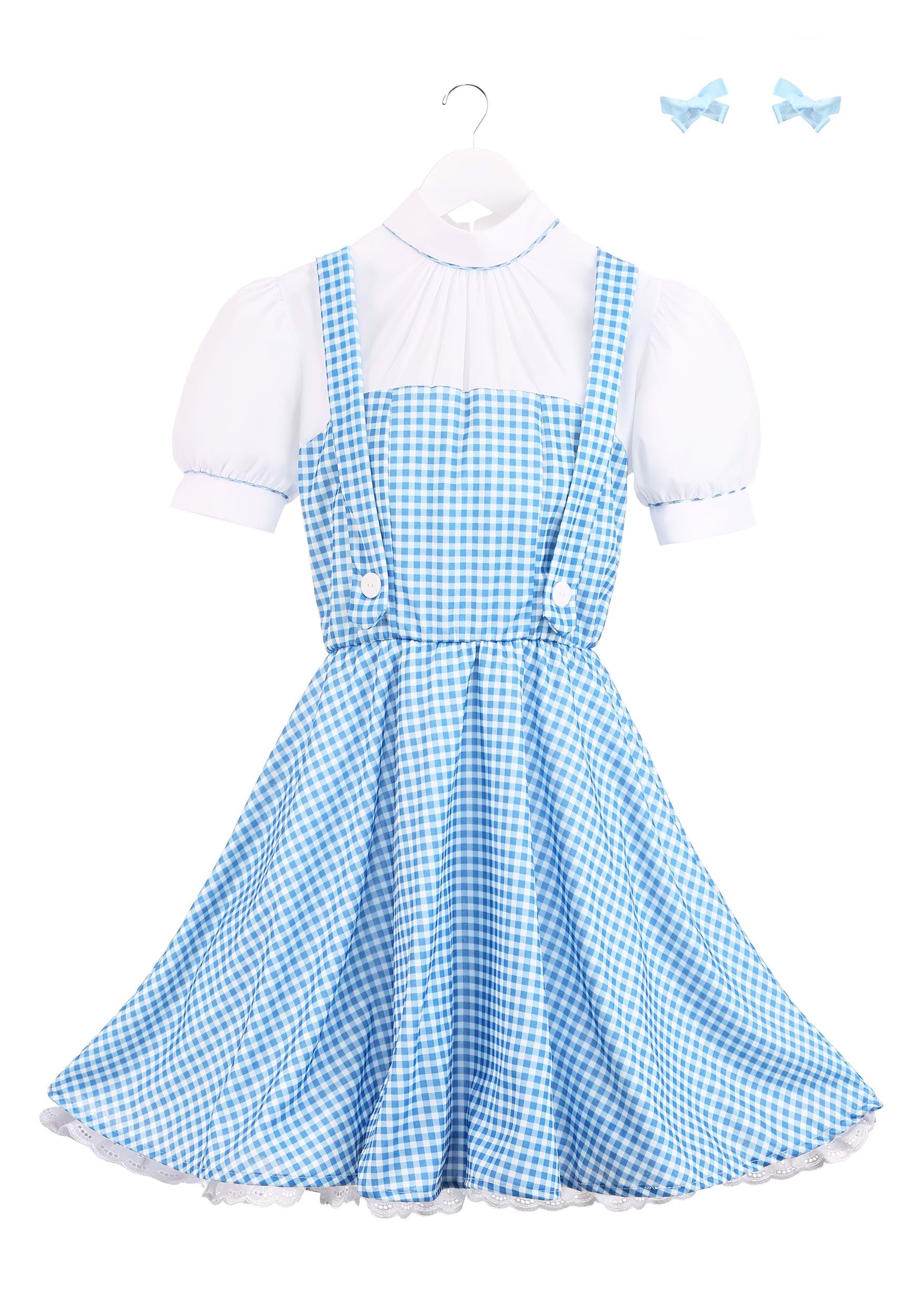 So, it looks like you're ready to be picked up for your trip over the rainbow! Better check the weather radar. If you want to polish off your look add anklet socks and a pair of those red slippers (because it just wouldn't be the same without them!), and a basket for Toto. Recruit friends to be the Scarecrow, Tin Man, Cowardly Lion, and Glinda for a fun group theme. Whether you're heading out from Kansas or New York City, when you're wearing this classic costume, you're sure to be headed to a brighter, more colorful world!