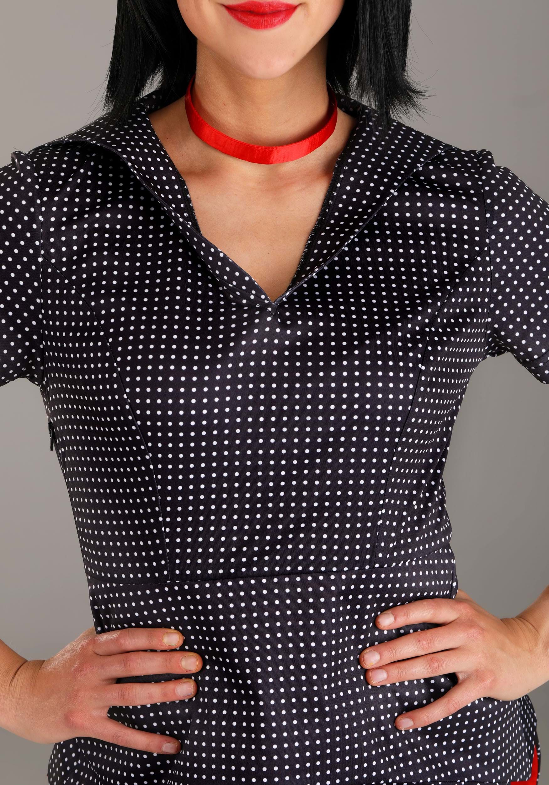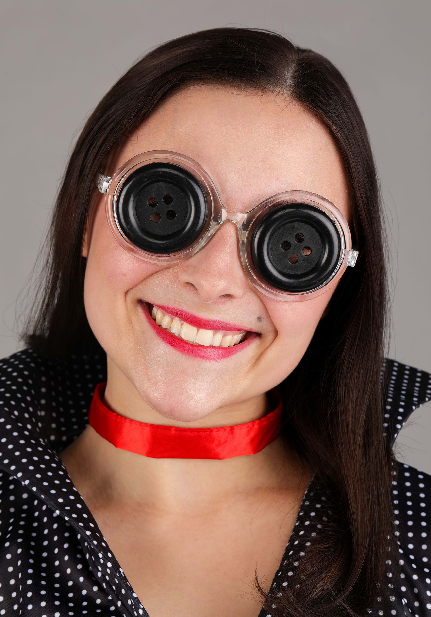 This Made By Us costume is so well crafted that you might be tempted to wear it to work on November 1! The black-backed, white-polka-dotted fabric is flattering from any distance. The zip-up torso is paneled for a streamlined and tapered look. The collar is pulled back just enough to show off the coordinating red choker. Spin around to see the skirt accents. Layers of print-lined red fabric mimic the pattern on a spider's back. The back of the collar flares in an exact mimic of the flared waist. The Other Mother's button eyes sit on a pair of clear-rimmed glasses. You'll be able to see everyone else, but they won't be able to see your real eyes.