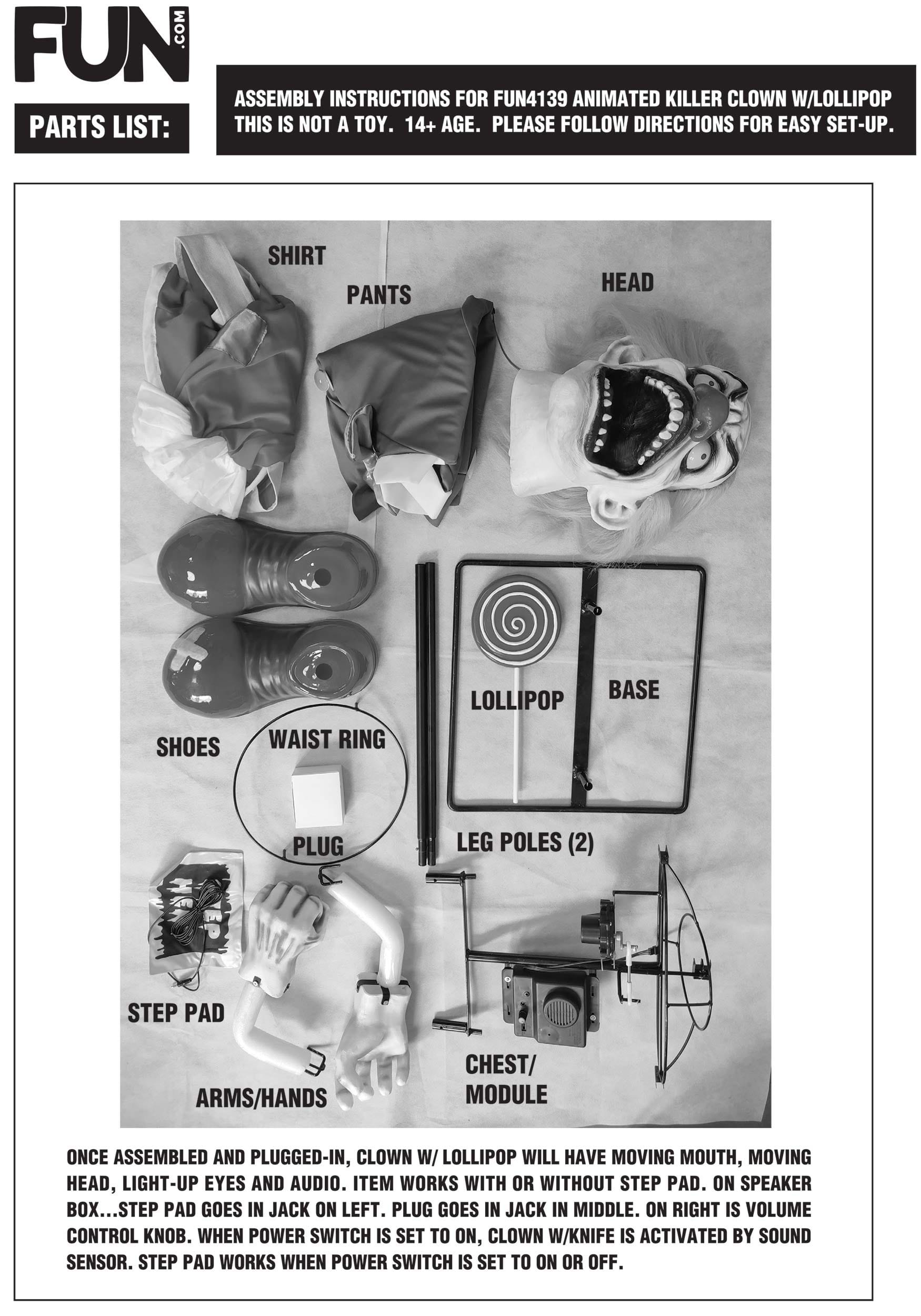 - Clowns mouth moves, head moves, eyes light up and makes sounds