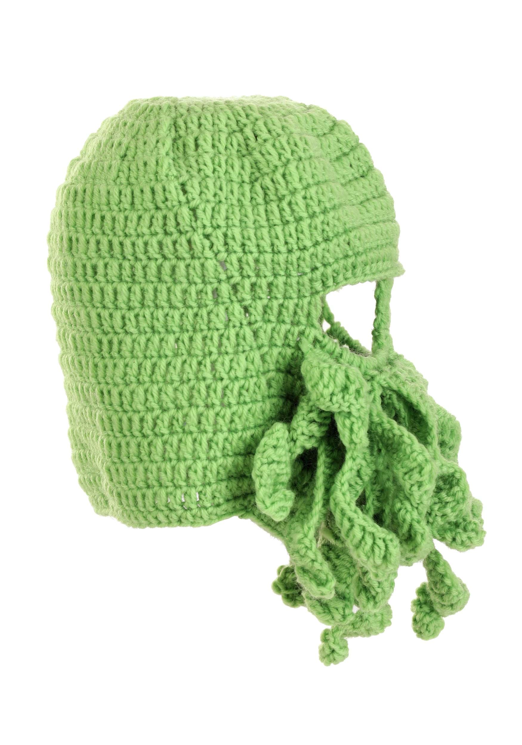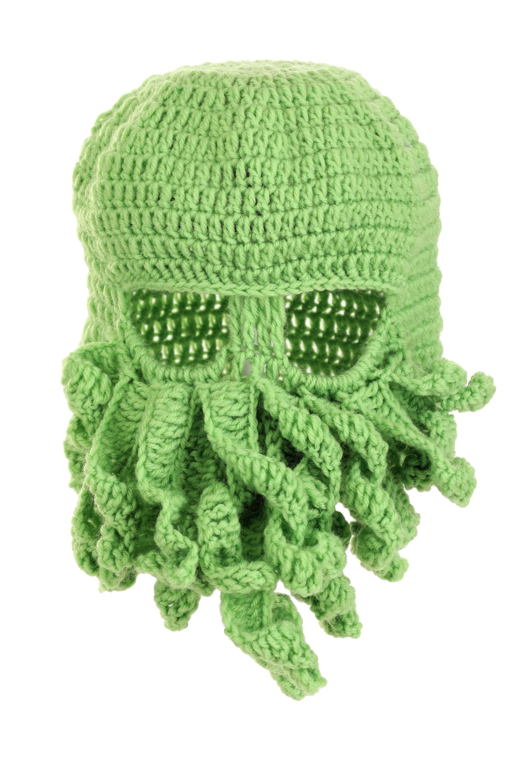 Crafted from 100% soft acrylic, this beanie is designed to provide the comfort and warmth you need during the cooler months, all while embodying the mystique of the great Cthulhu. With eye holes for visibility and a mouth hole situated under the knit "beard", this beanie is both novel and functional, ensuring you'll be comfortable while exploring the darkest corners of the earth... or just your local bookshop.