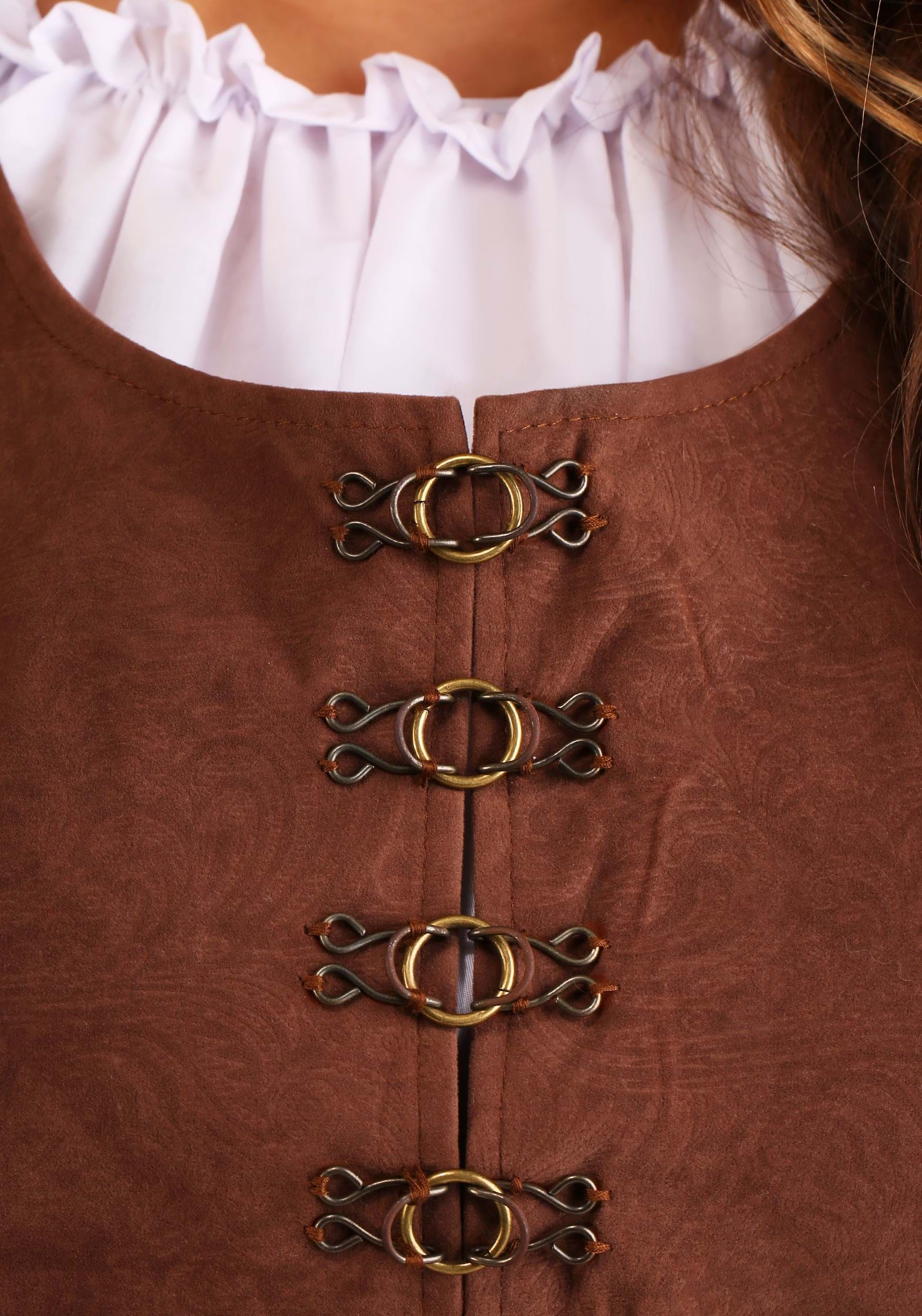 - Shirt, vest, skirt, and cape: 100% polyester, Jacket flocking: rayon, and cotton crushed velvet, broadcloth, faux suede, and faux leather
