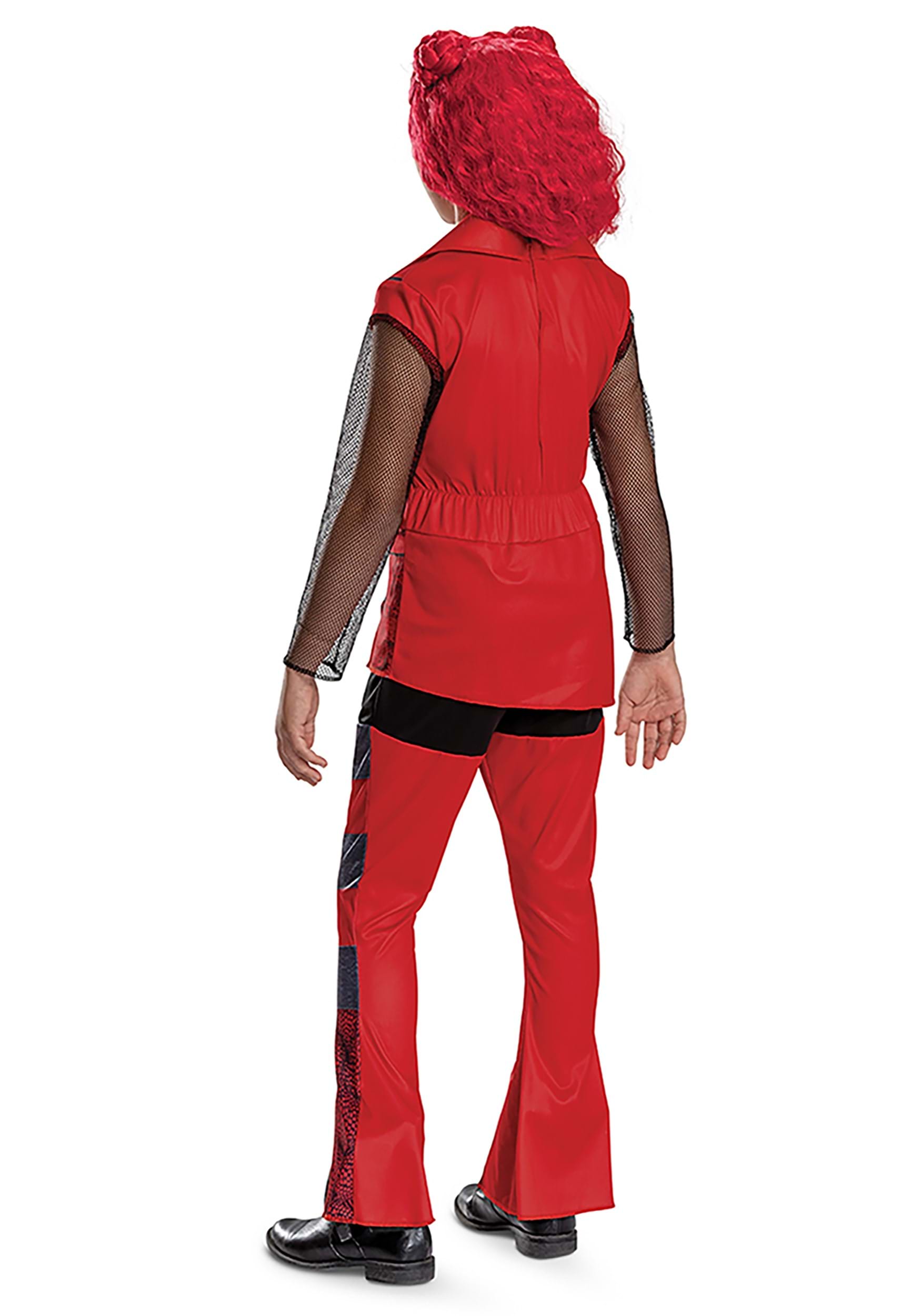 The mesh sleeves add an extra touch of flair and attitude, ensuring you stand out, just like Red herself. With elastic in the back of the waist, you'll stay comfortable while showing off your dynamic moves, whether you're battling for the throne or hanging out with fellow Descendants. The sewn-in skirt adds a layered look, and the pants feature a bold boot-cut design that's perfect for stomping through Wonderland in style.