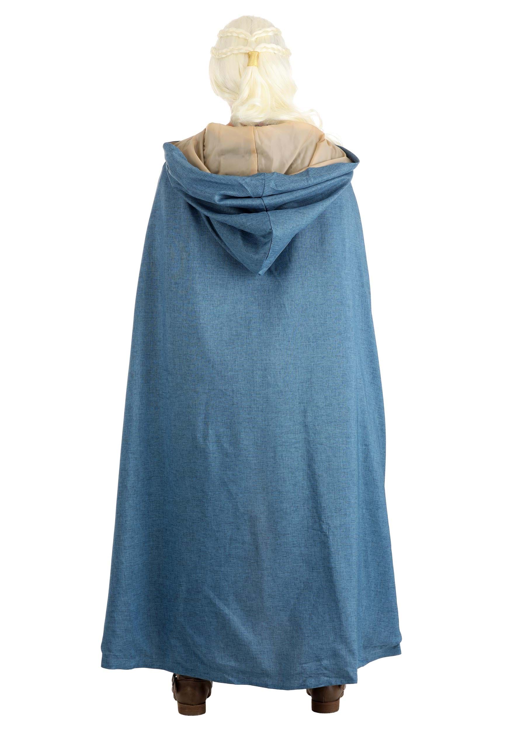 Designed in our costume studios, we made this Dragon Queen costume to stand above all others. Styled as a tunic and cape combination, with included leggings, this ensemble will give you the style of a true warrior princess—but not that one. The rich blue fabric has a heavy linen look and feel, and the cape secures around the neck so you can wear it as desired. Just pick up our Dragon Queen wig and some stylish boots (sold separately), and you too will be ready to rule!
