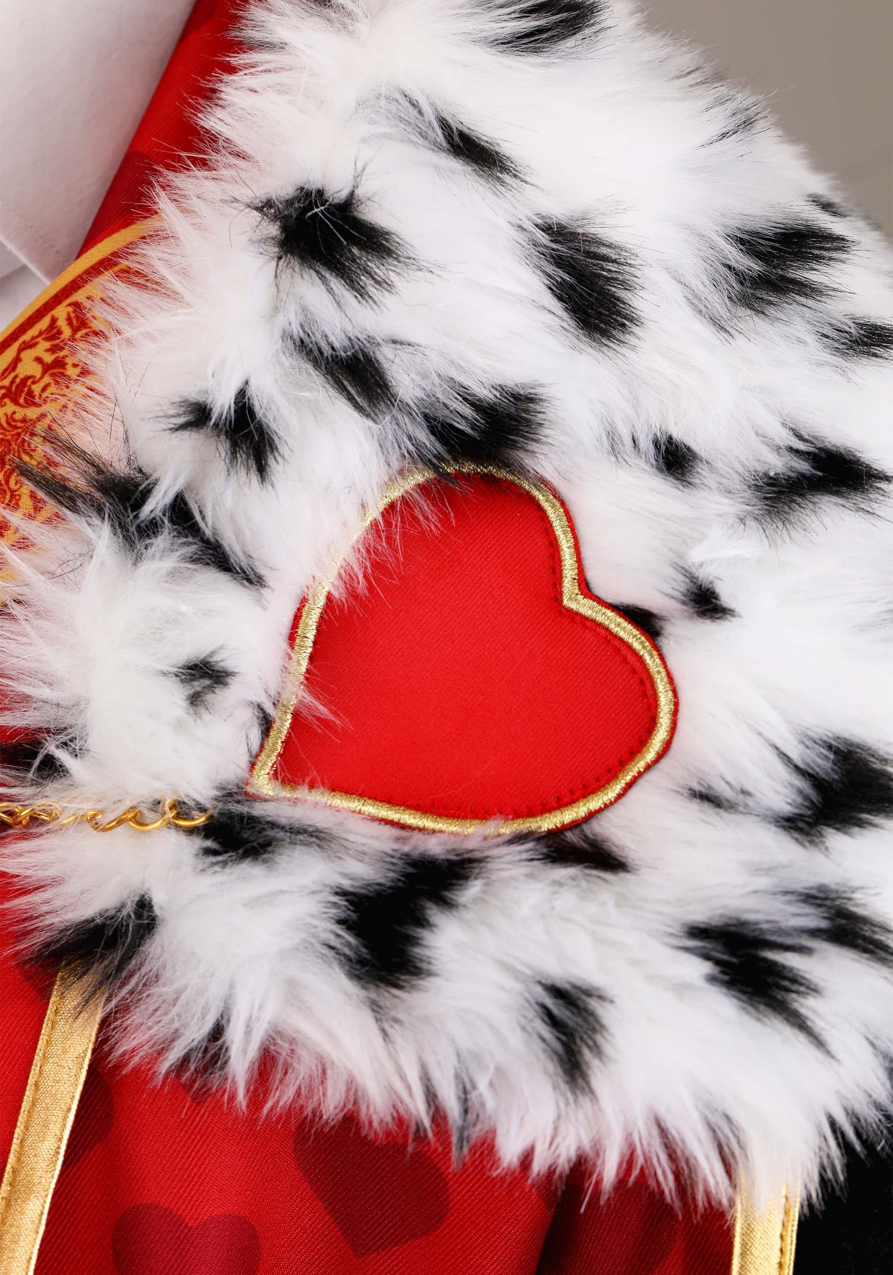 - Velvet cape has wide faux fur collar, gold edge binding, appliqued hearts