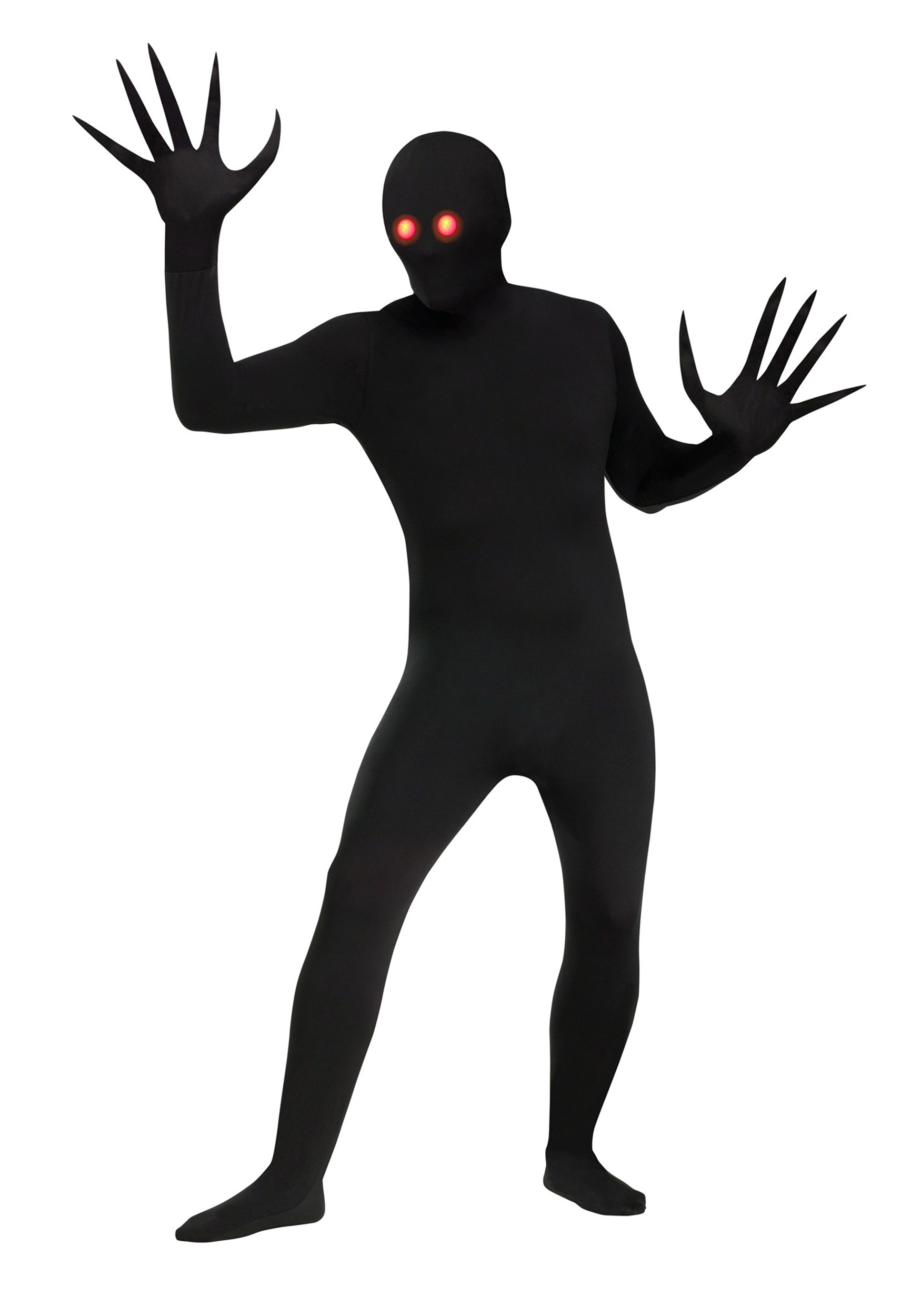 Every horror movie has some sort of bloody monster with sharp claws or a weird mask, but sometimes it's what you can't see that evokes the most fear. Picture this. The night extinguishes every light; not even starlight dares to shine. Dead silence. From the depths of the darkness, a shadowy figure writhes closer and closer. Glowing red eyes begin to dance in the darkness. Is it a monster? A demon? Perhaps a person? Your imagination runs wild with all the evil creatures it could be as it creeps closer to you and the panic strangles your chest with a primal fear. Creepy, right? Now imagine you ARE that shadowy figure with glowing eyes. That's what this shadow demon costume is all about!