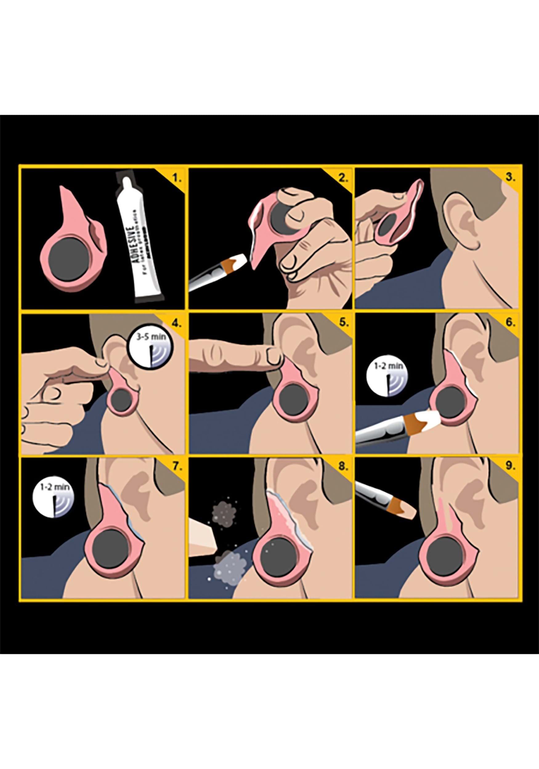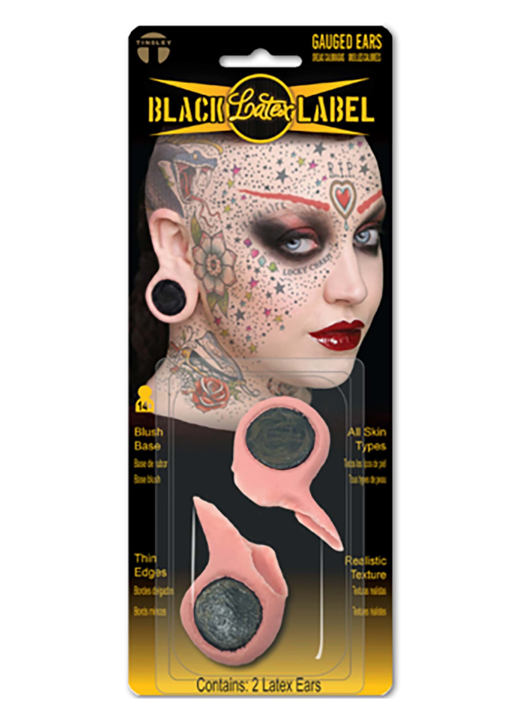 Give a cool body mod a no-commitment spin when you use this Gauged Ears Application! The accessory set includes a pair of latex ears with round black gauges in the centers. The prosthetics can be used on all skin types and are easy to apply with makeup-grade adhesive.