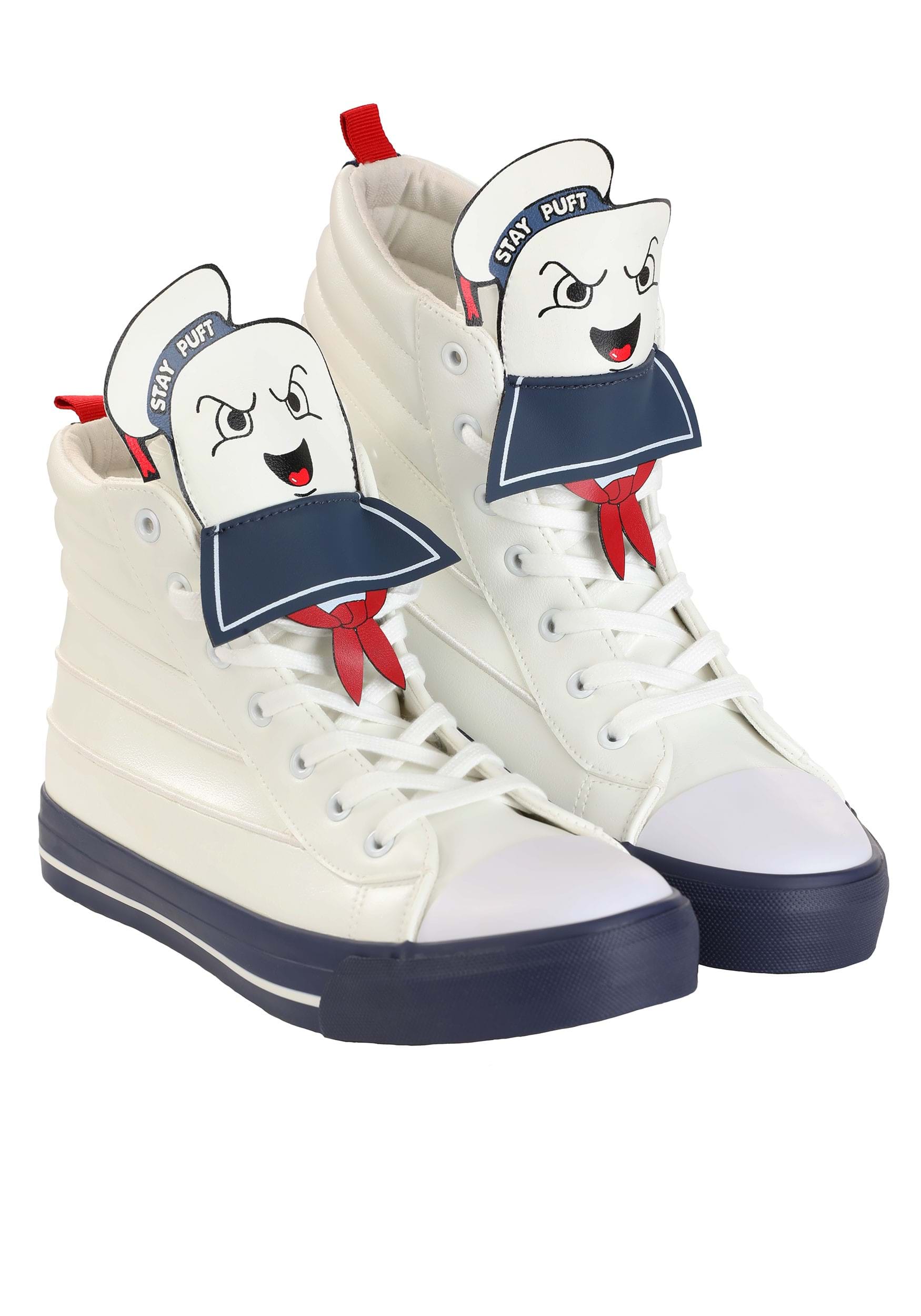 This is a pair of exclusive Ghostbusters Stay Puft Marshmallow Man Shoes for Adults.