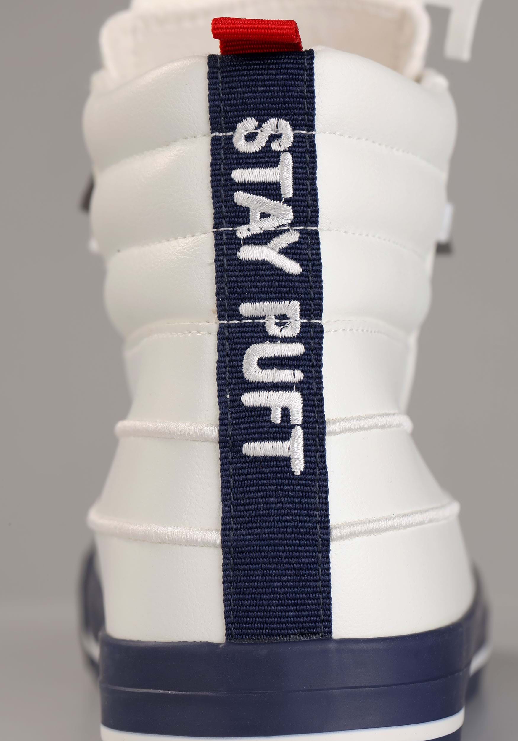 - Laces on the front, double tongue construction has Stay Puft face on the top and his shirt and tie on the bottom