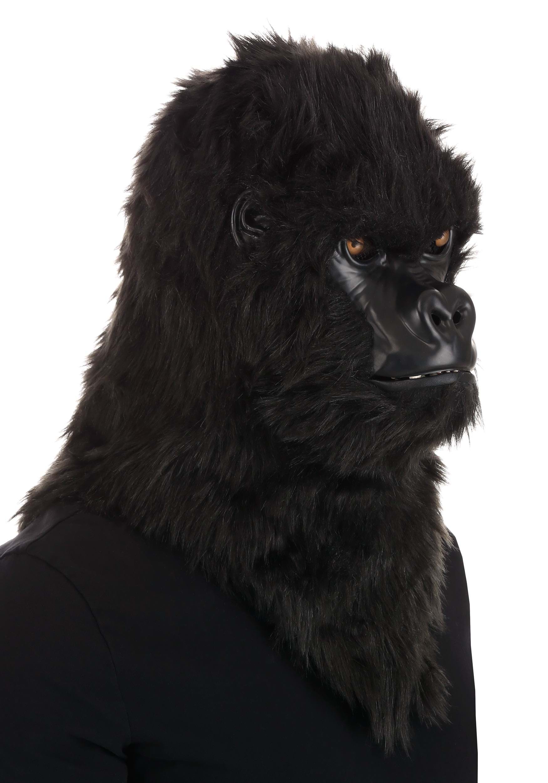 Your human face will be unrecognizable under this fantastic mask. It creates a gorilla's shaped head and a collar of fur, and it uses realistic details to take this look from "costume" to true transformation. The small yellow eyes and molded face and snout, plus the peek of gorilla fangs, are unforgettable. Did we mention the lower jaw of this costume moves when you do? Amazing, right?